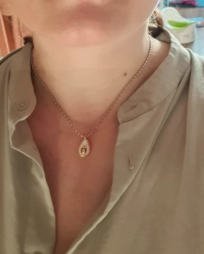 Кулончик очаровательный, но ожидала, что он будет немного больше, размер у продавца указан вместе с петелькой, то есть сама авокадинка 15 мм по высоте. Вставка из перламутра, качество исполнения на высоте. До Москвы посылка дошла за неделю.