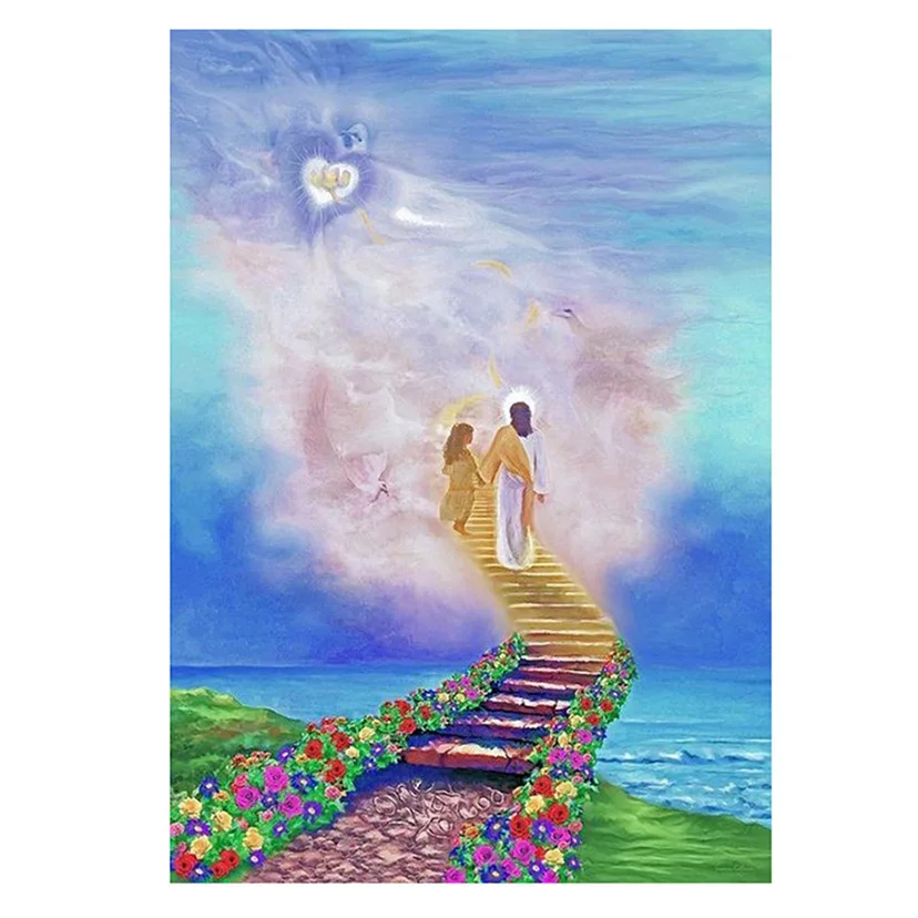 5D Иисус религиозный лестница в Небесный мост полное сверление круглый бриллиант наборы для рисования искусство мультфильм 3D краска бриллиантами XN1426
