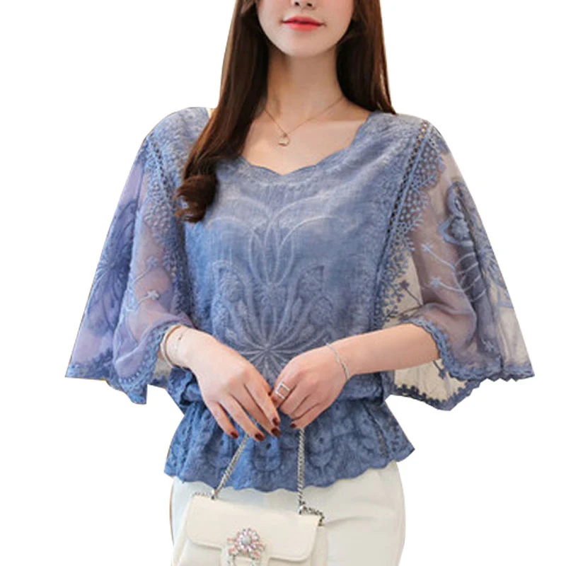 Женская шифоновая блузка с цветочным принтом, хлопковая кружевная блузка с краями и бабочками, лето 2022