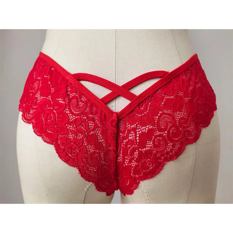 Женские сексуальные ажурные трусики-стринги с бантом и полностью кружевной промежностью
