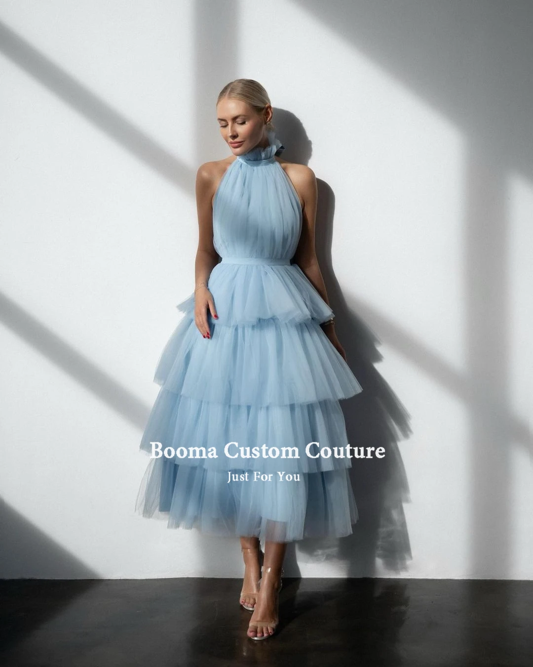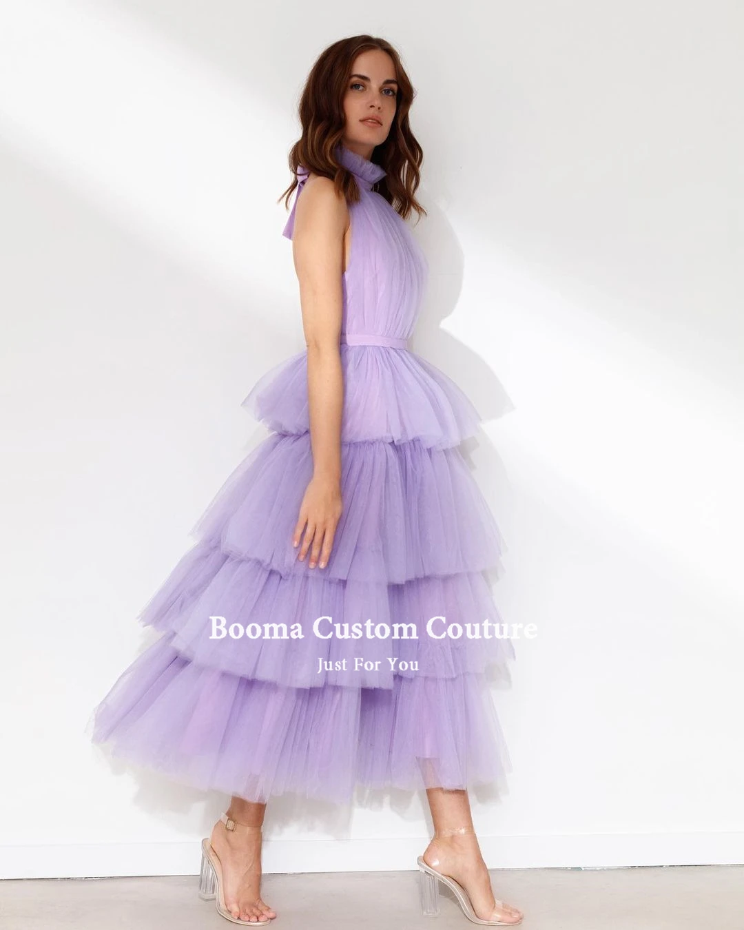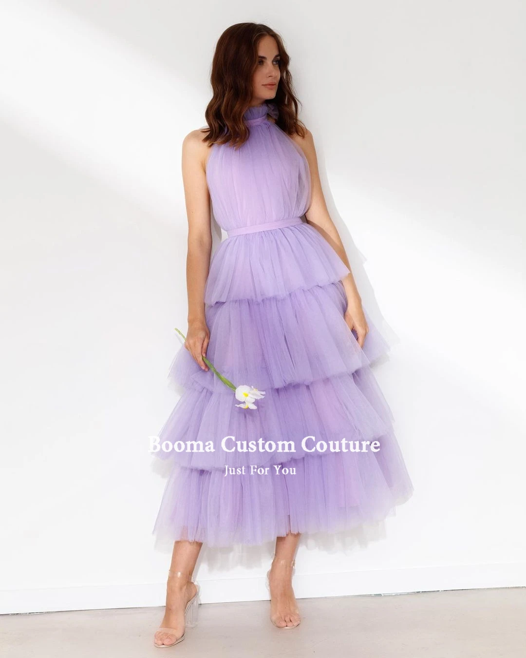 Женское платье с лямкой на шее Booma, Сиреневое платье средней длины, ТРАПЕЦИЕВИДНОЕ ПЛАТЬЕ для свадебной вечеринки, выпускного вечера