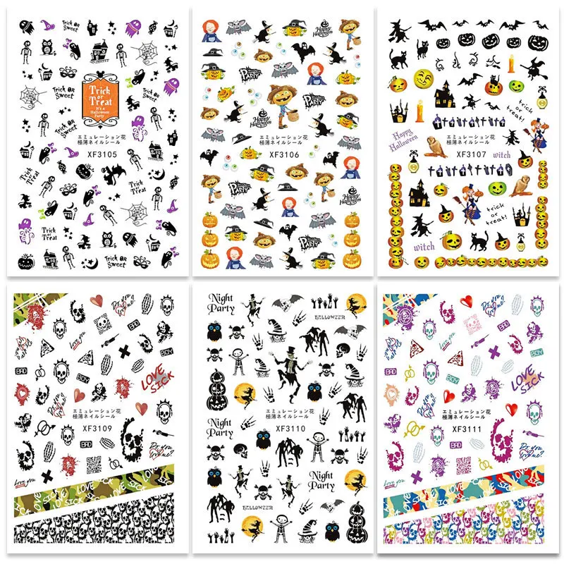 12 шт.компл., наклейки для дизайна ногтей в стиле Хэллоуин, смешанные тыквы, искусственные черепа, самоклеящиеся 3D-Наклейки для ногтей, Обертывающие украшения