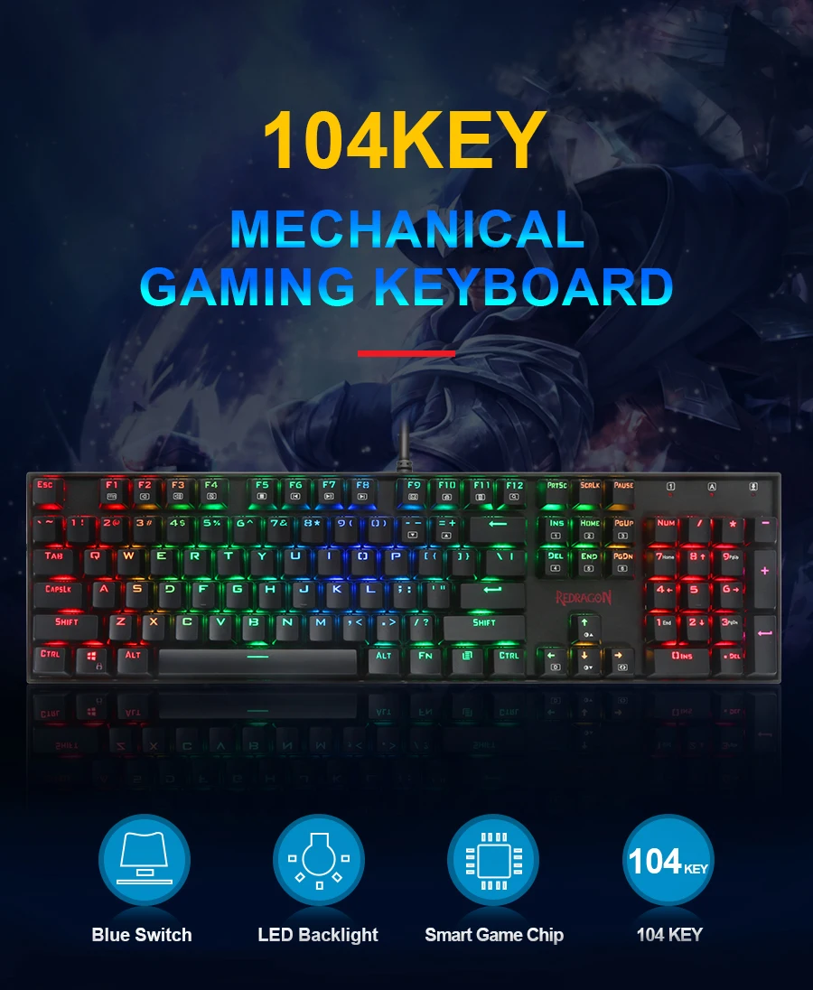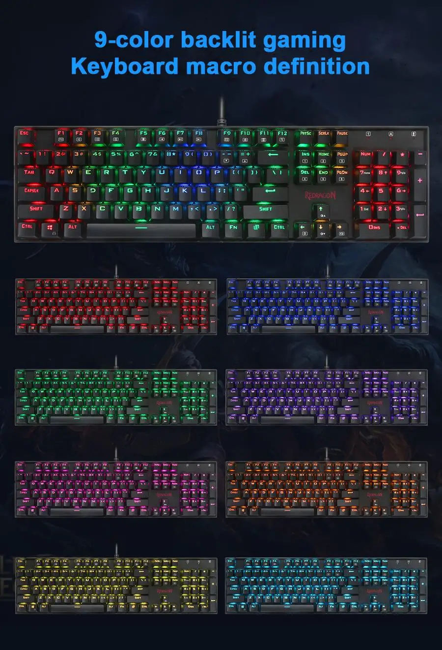 Механическая игровая клавиатура Redragon пункт K551 с RGB-подсветкой, USB, 104 клавиш
