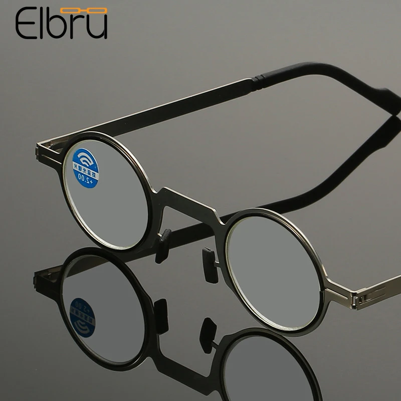 Elbru модные очки для чтения с защитой от сисветильник светильник металлические круглые квадратные очки с прозрачной оправой для дальнозоркости диоптрии + 1,0 + 4,0