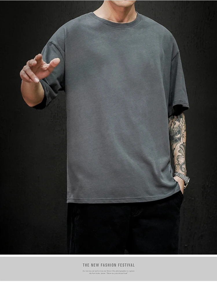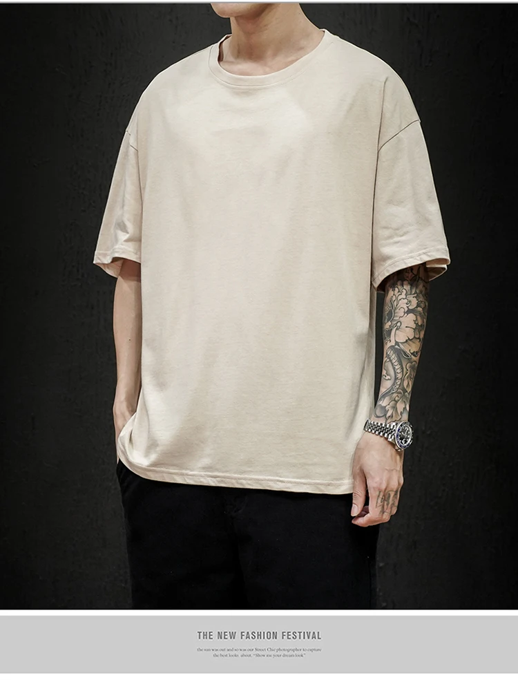 Футболка мужская оверсайз с коротким рукавом, однотонная хлопковая ...