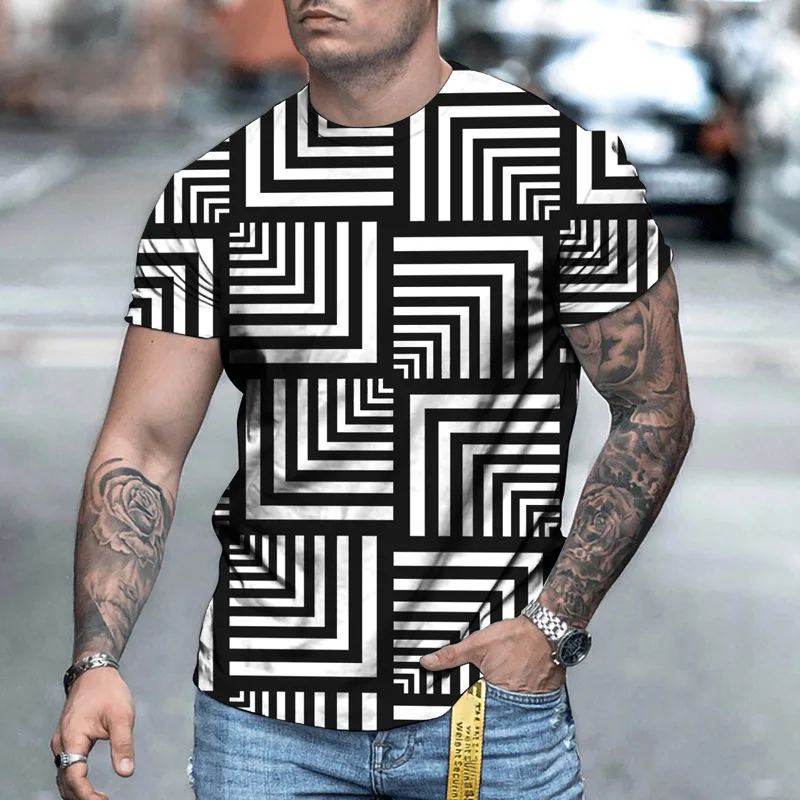 Мужская футболка с коротким рукавом, летняя, для отдыха, с 3D перек...