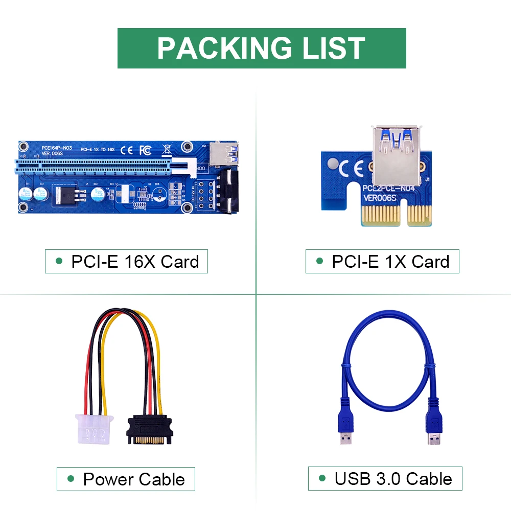 Примечание: поскольку каждая партия сырья может отличаться, плата PCI-E может немного отличаться от внешнего вида (например, твердый конденсатор, кабель USB 3,0, модель чипа), но функция такая же. CHIPAL Technology обещает протестировать все PCI-E стояки перед отправкой!