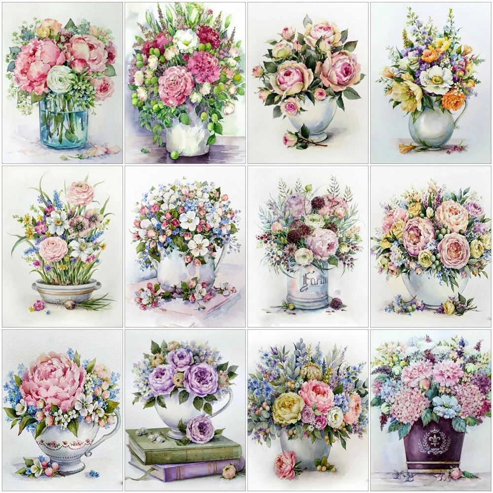 5D алмазная живопись сделай сам, Цветочная композиция, Цветочная ва...