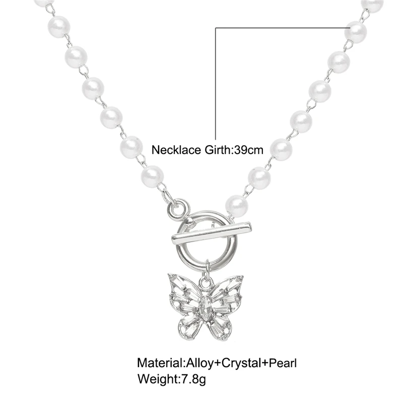 Женское винтажное ожерелье с жемчугом и бабочкой, серебряного цвета