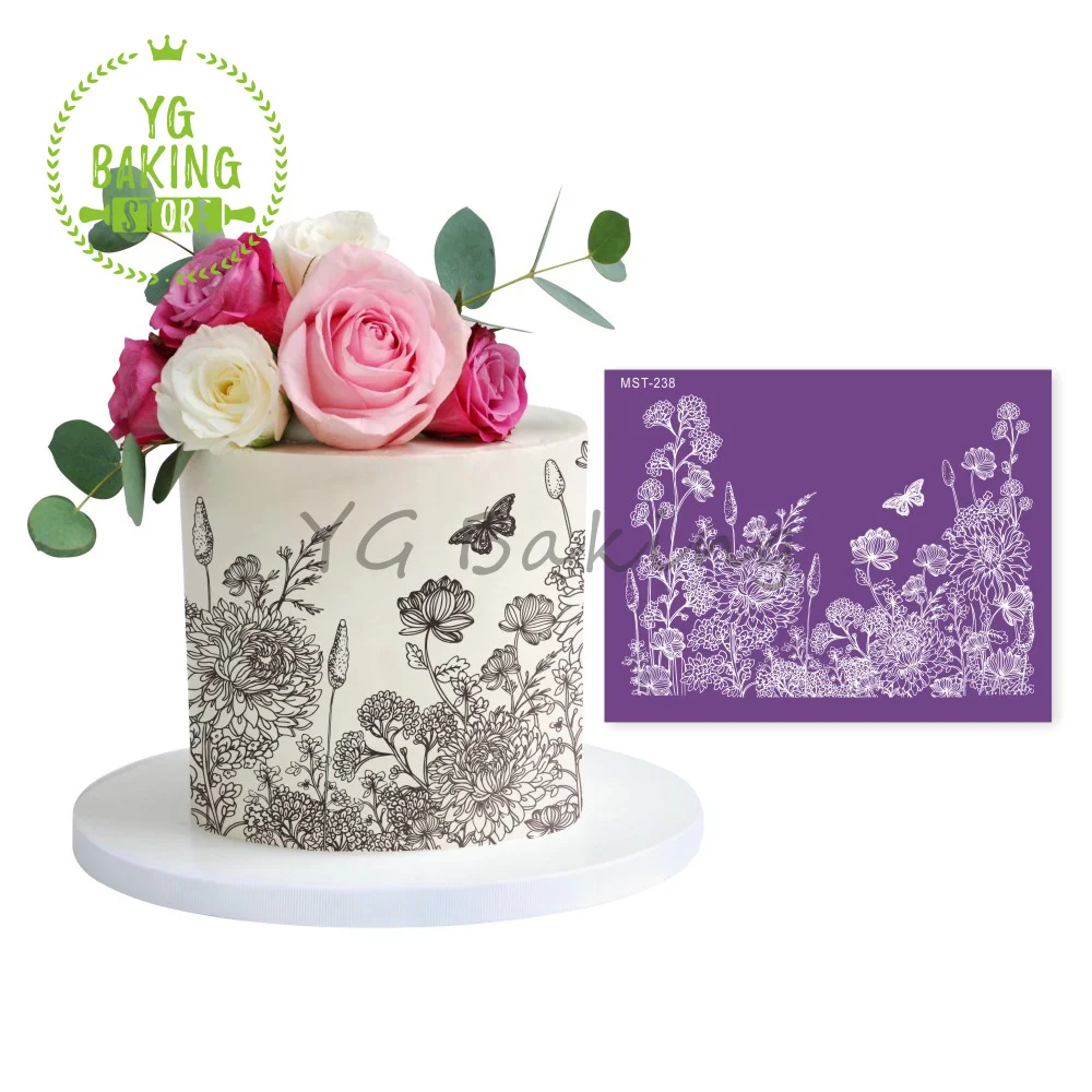Сетчатый трафарет из хризантем, трафарет для торта на день рождения...