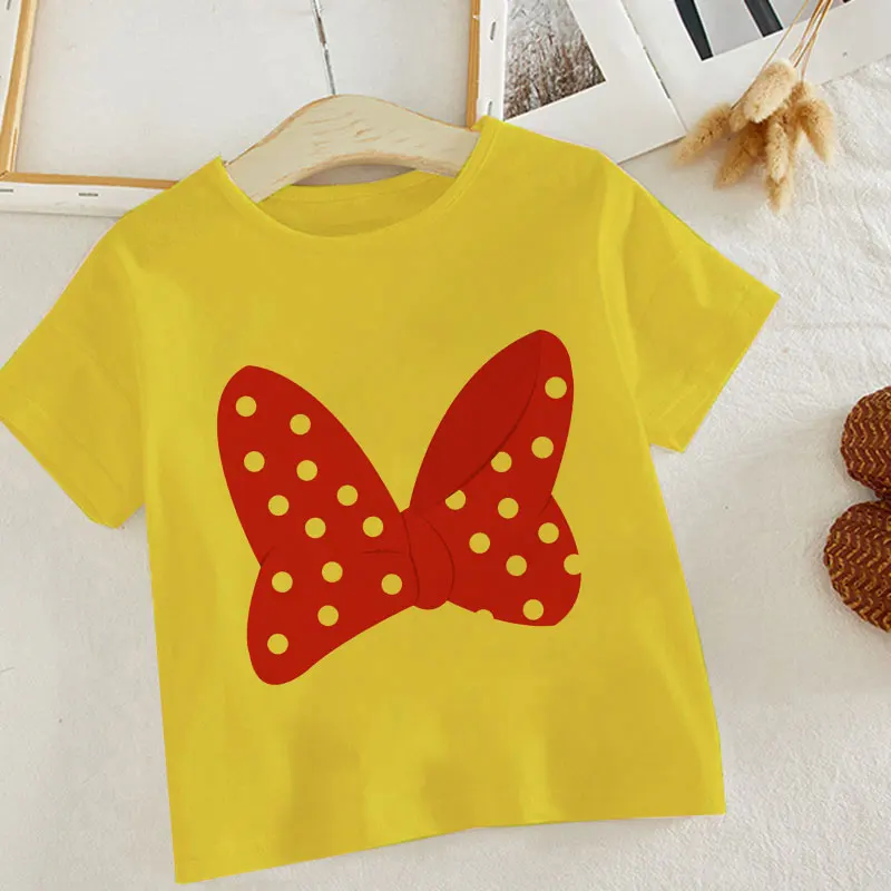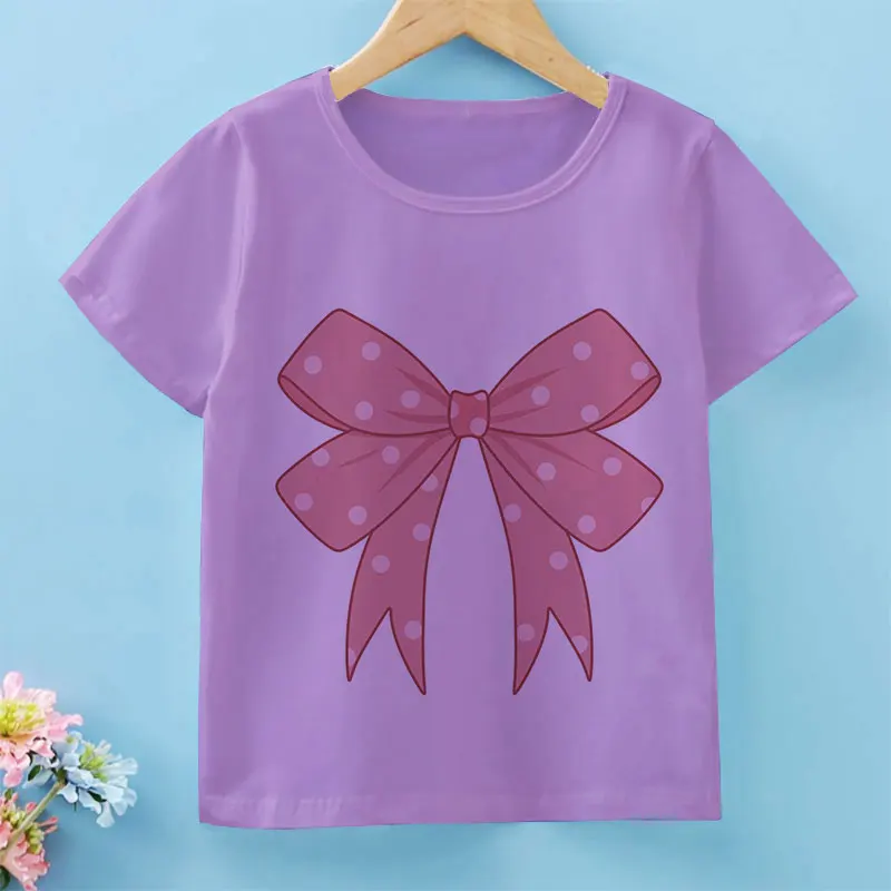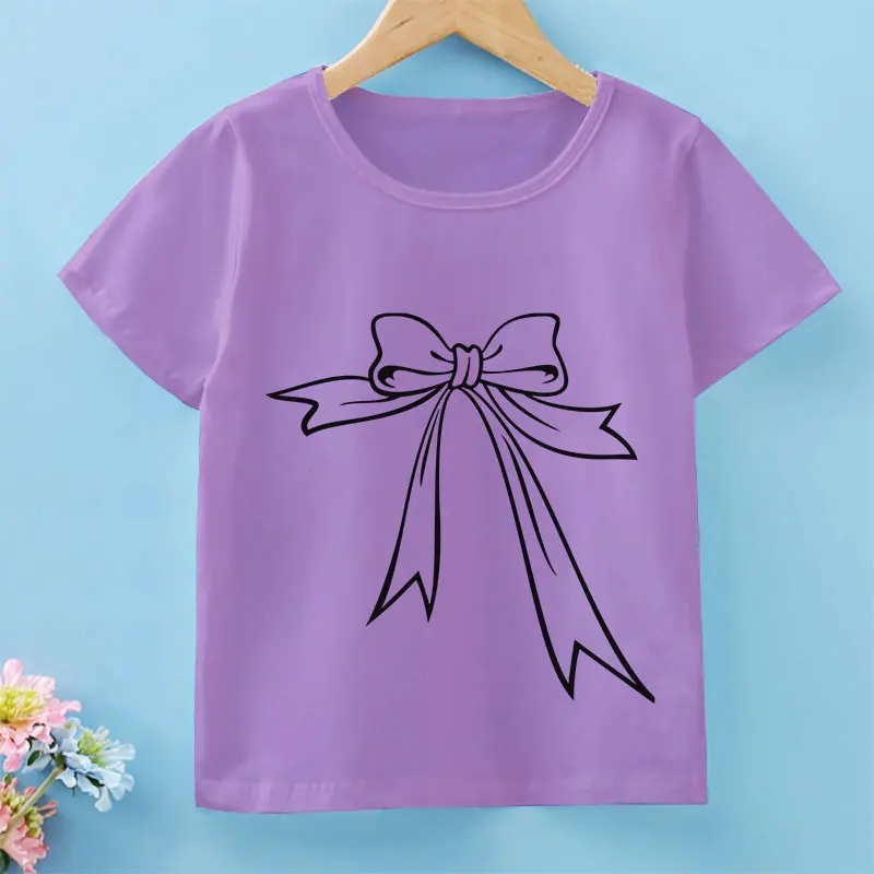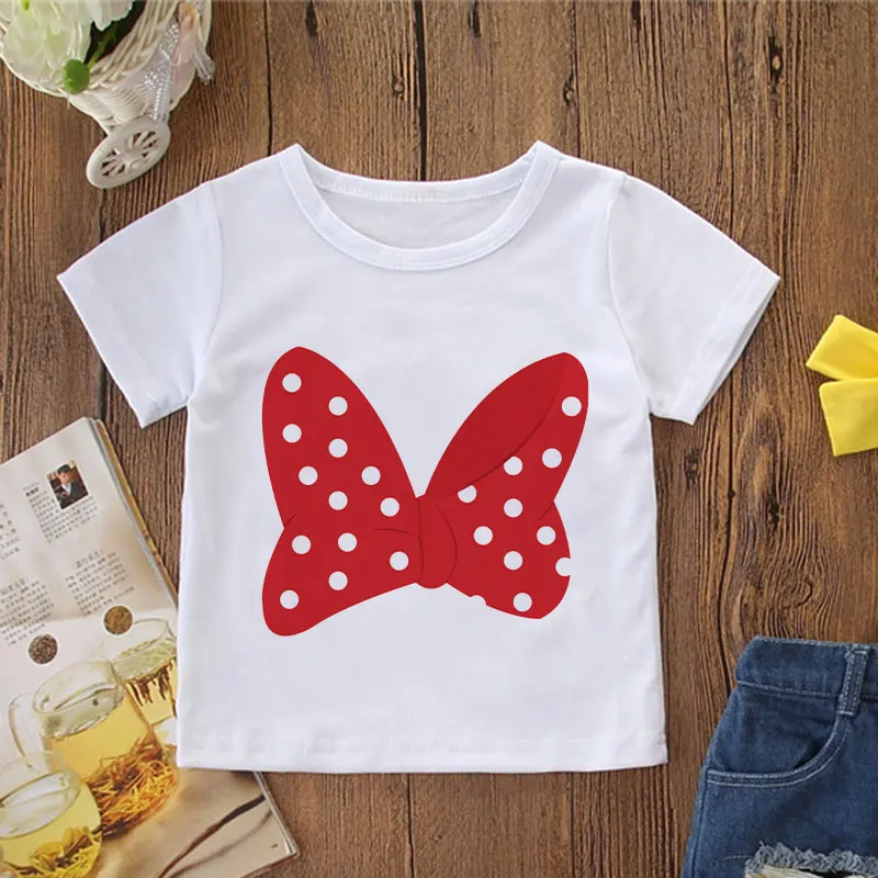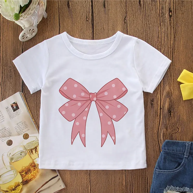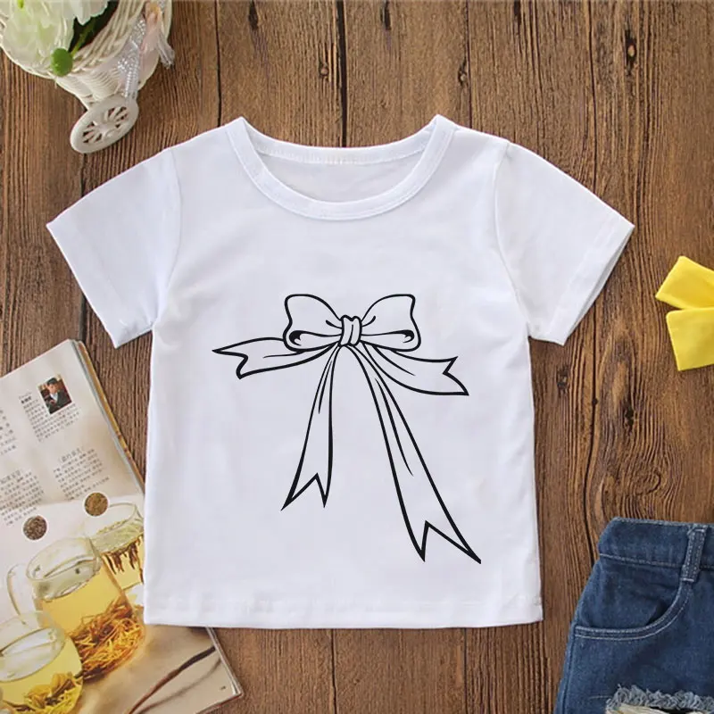 Летняя красивая и милая белая футболка с принтом и бантом, топ для детей, одежда унисекс для мальчиков и девочек 2, 3, 4, 5, 6, 7, 8, 9 лет, 2021