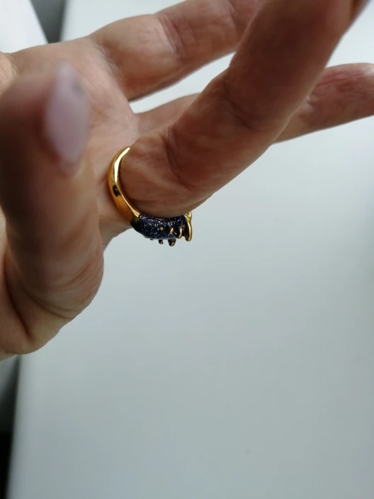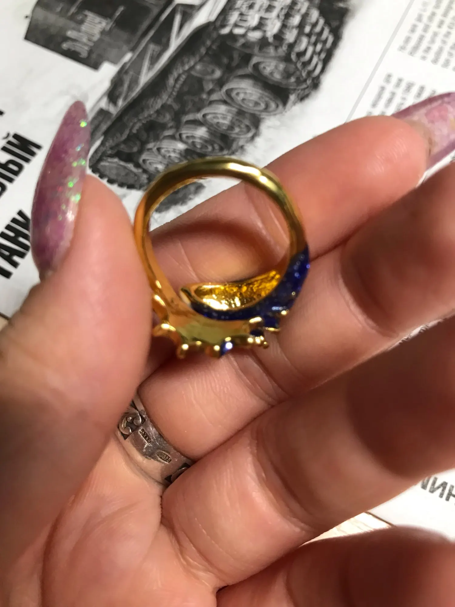 Кольцо пришло не такое, как на фотографиях продавца (там оно синеватое с переливом в белый и более блестящее, другой формы, а в реальности оно синее, без перелива в белый (он просто накрашен снизу, перехода цветов нет), не такой блестящий, форма частично другая + заливка цвета вышла за контур во многих местах). Ну вообще оно миленькое, но обидно за такое. Однако при открытии спора продавец вернул часть средств, за что ему большое спасибо, поэтому 4 звезды.