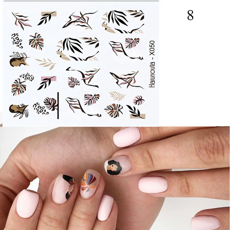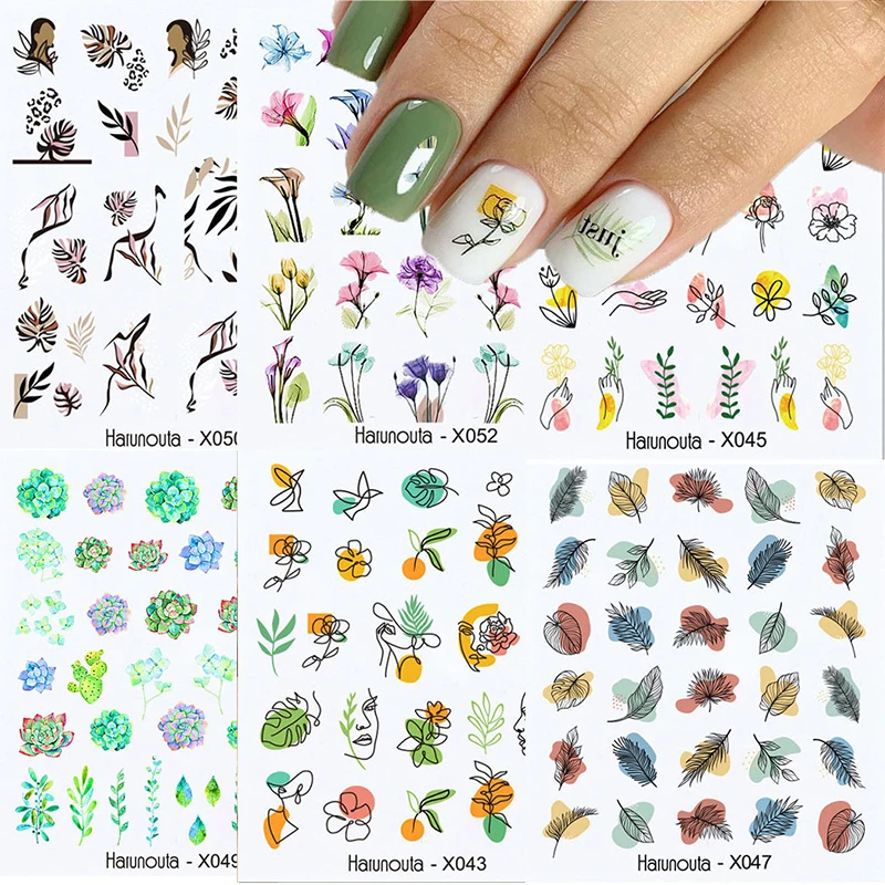 Водные Наклейки для ногтей с изображением цветов, Листьев, стрекозы...