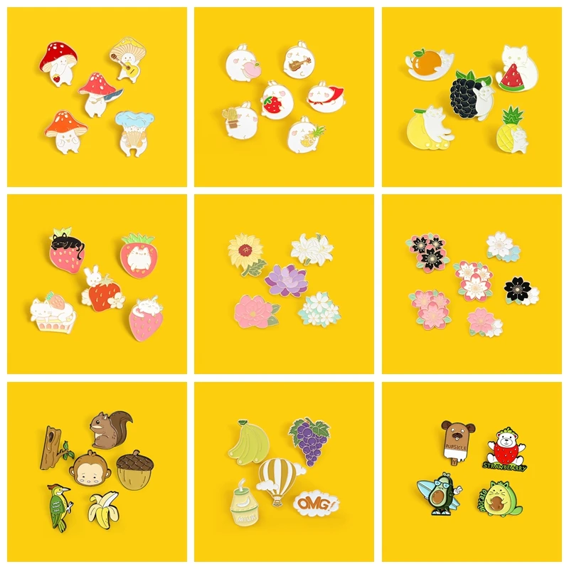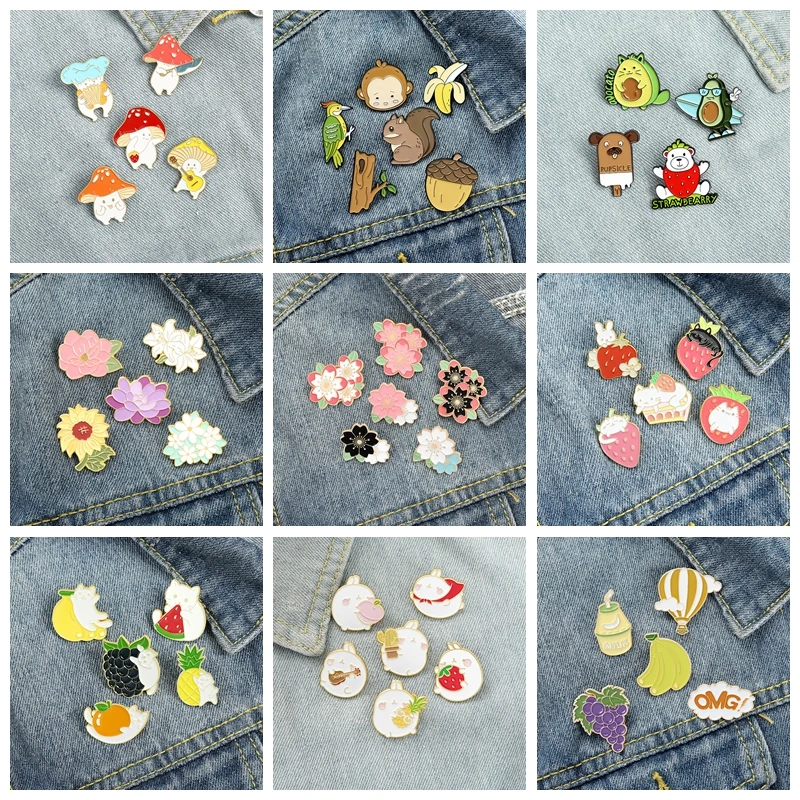 О! 4 8 шт.компл. эмалевые булавки с фруктами, растениями, цветами, Сакурой, клубникой, авокадо, брошь грибы, булавка для лацкана в горшке, значки, ювелирные изделия