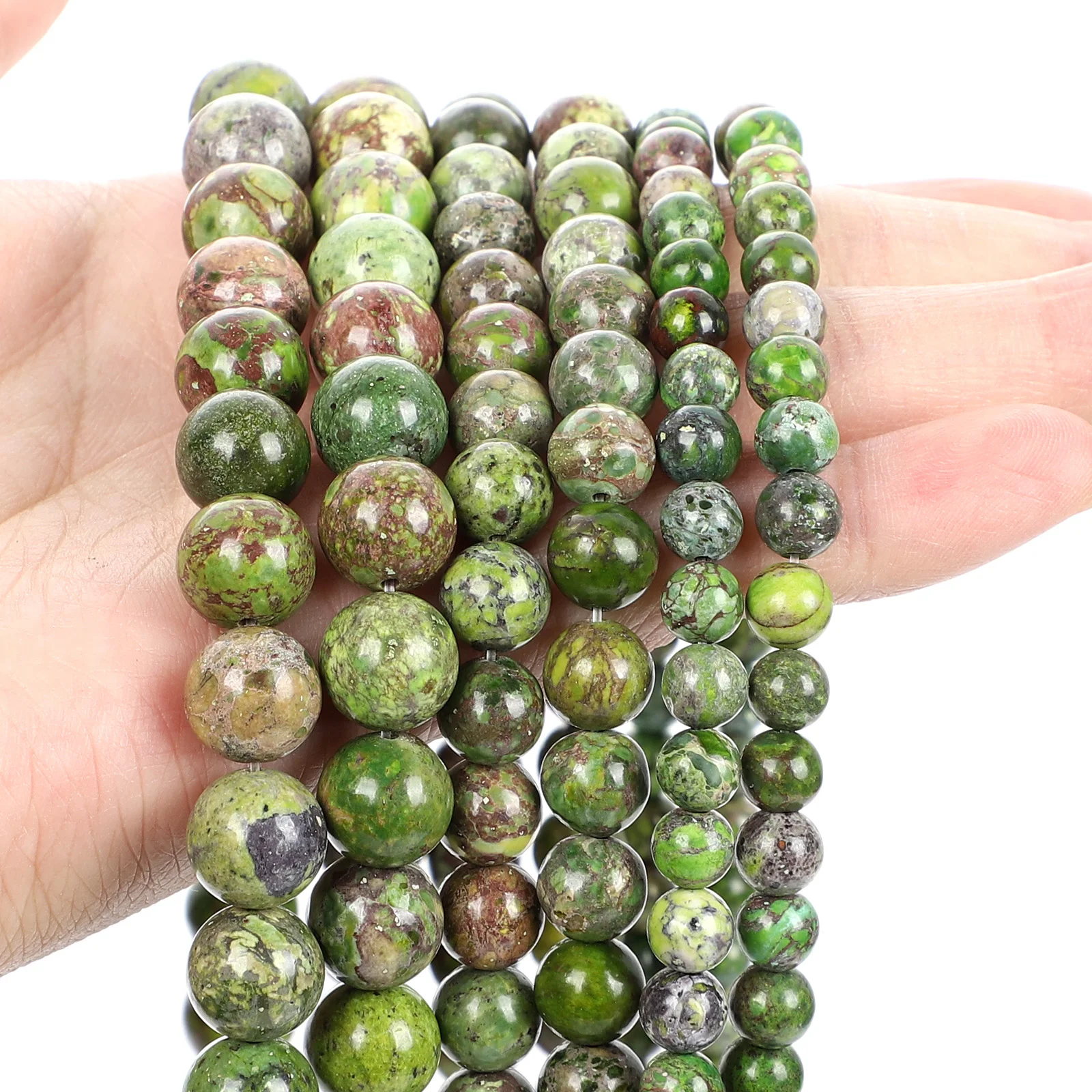 Бусины из натурального камня, зеленая императорская сосна, Очаровательные Круглые бусины россыпью для изготовления ювелирных изделий, рукоделия, браслетов, ожерелий 6810 мм