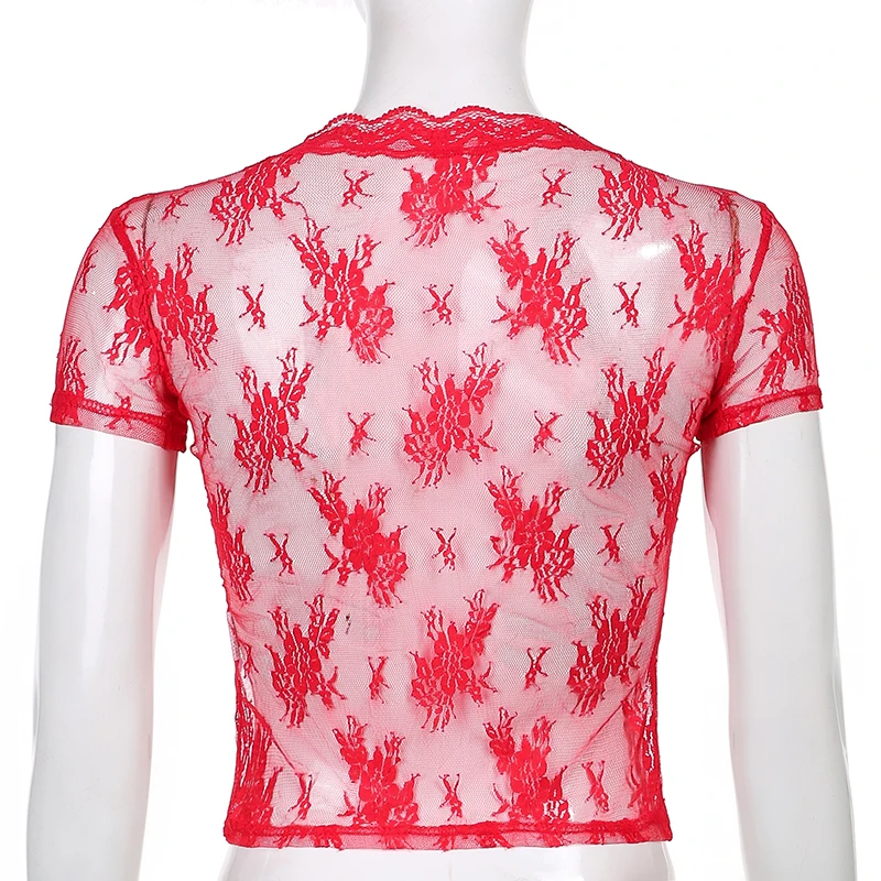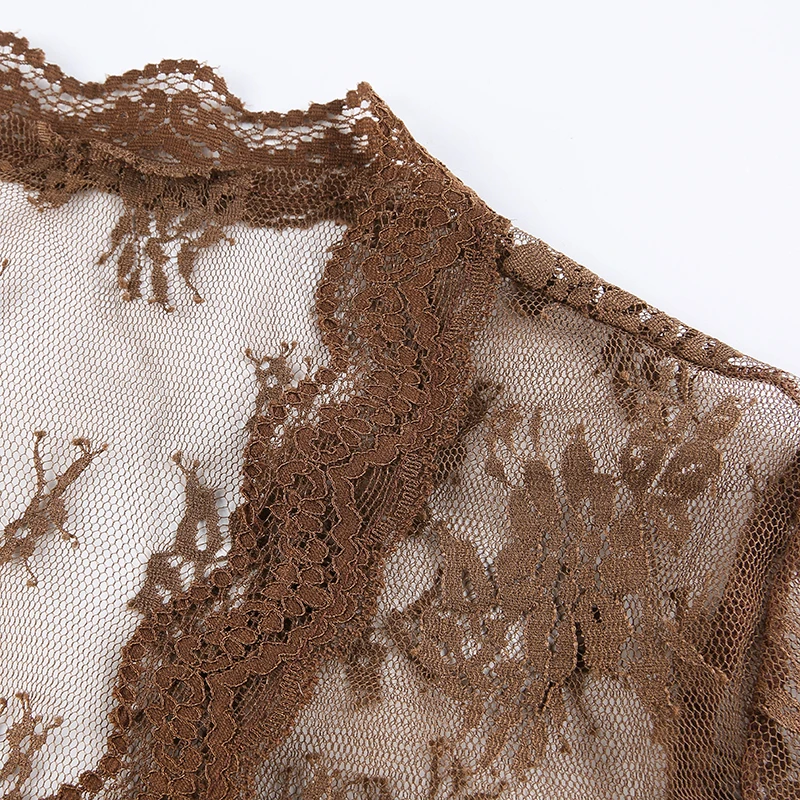 Женский кружевной топ Y2K, винтажный, сексуальный сетчатый, прозрач...