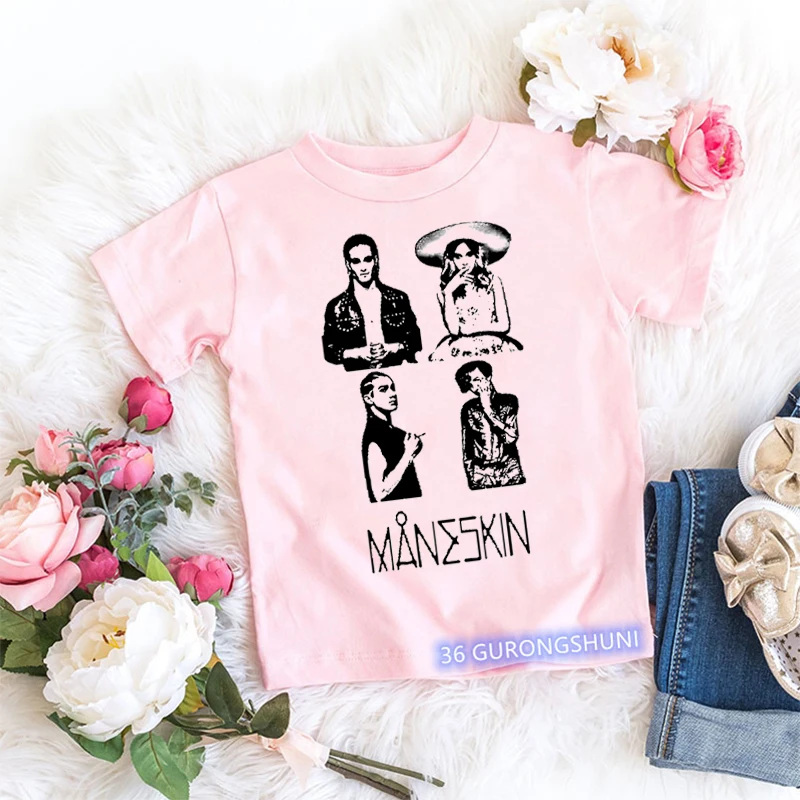 Милые рубашки с надписью David Maneskin, футболки с мультяшным принтом для девочек, детская одежда, рок-н-ролл, детские топы