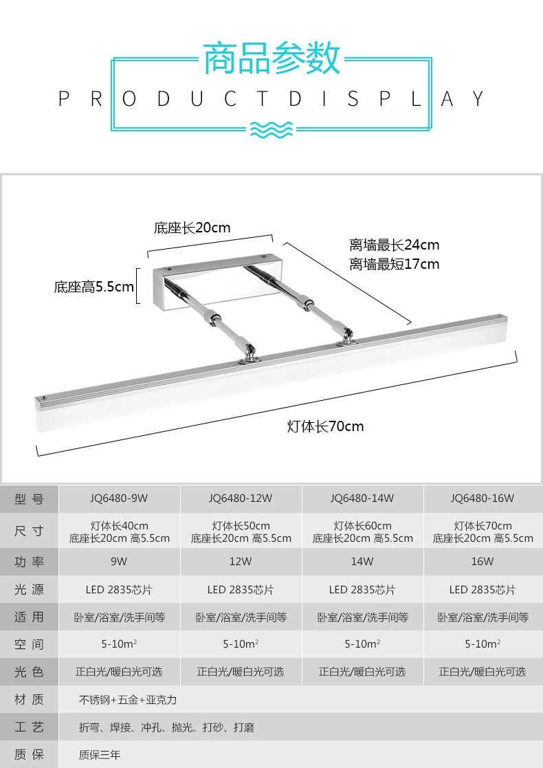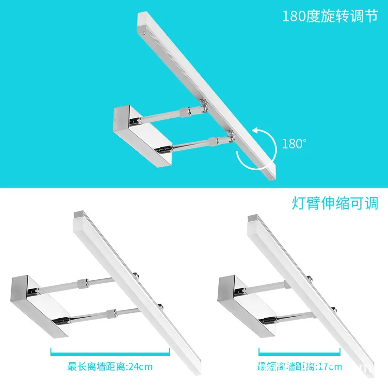 Новое светодиодный ное зеркальное передсветильник щение для ванной комнаты светильник см 50 см 60 см 70 см Простая Современная противотуманная золотистая телескопическая зеркальная лампа для макияжа