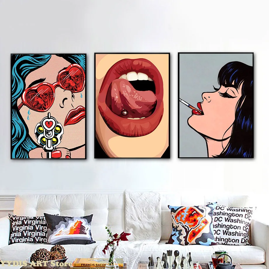 Картина на холсте с изображением красных губ курительной женщины