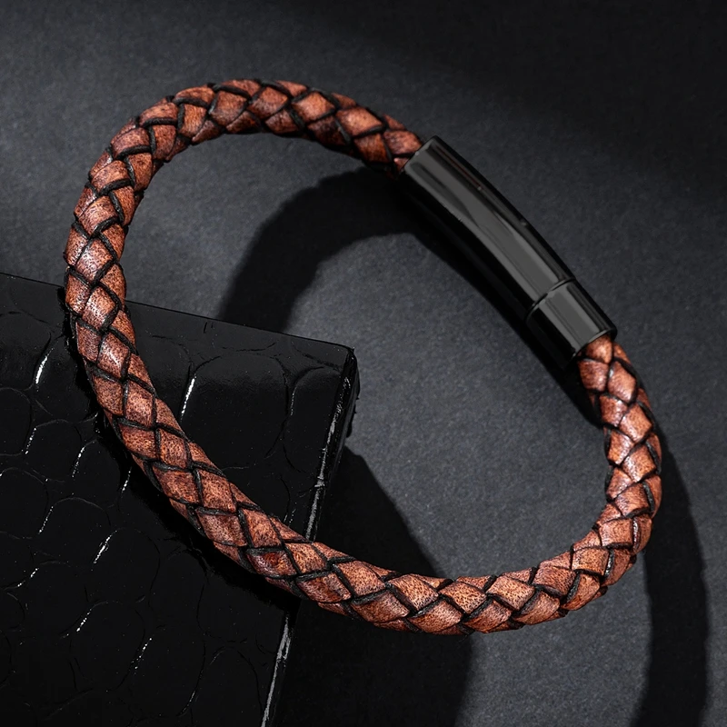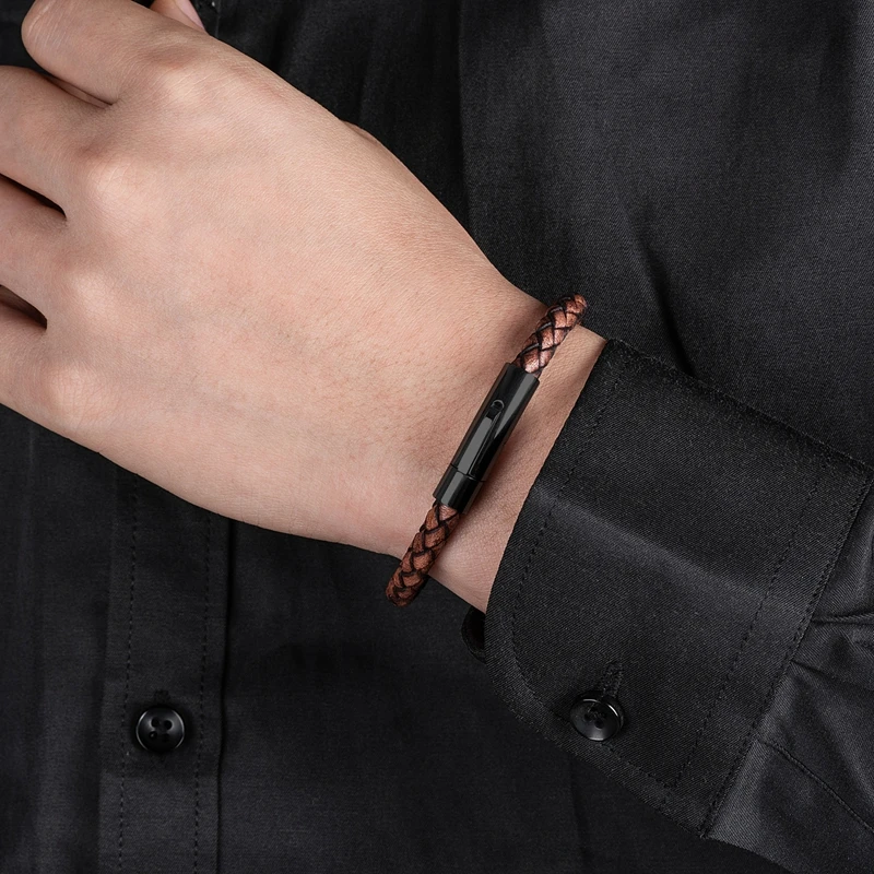 Модный плетеный кожаный браслет для мужчин, ювелирные изделия ручно...