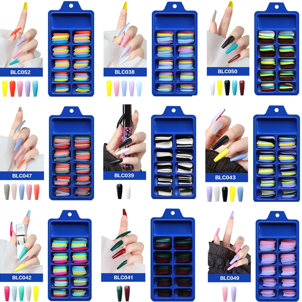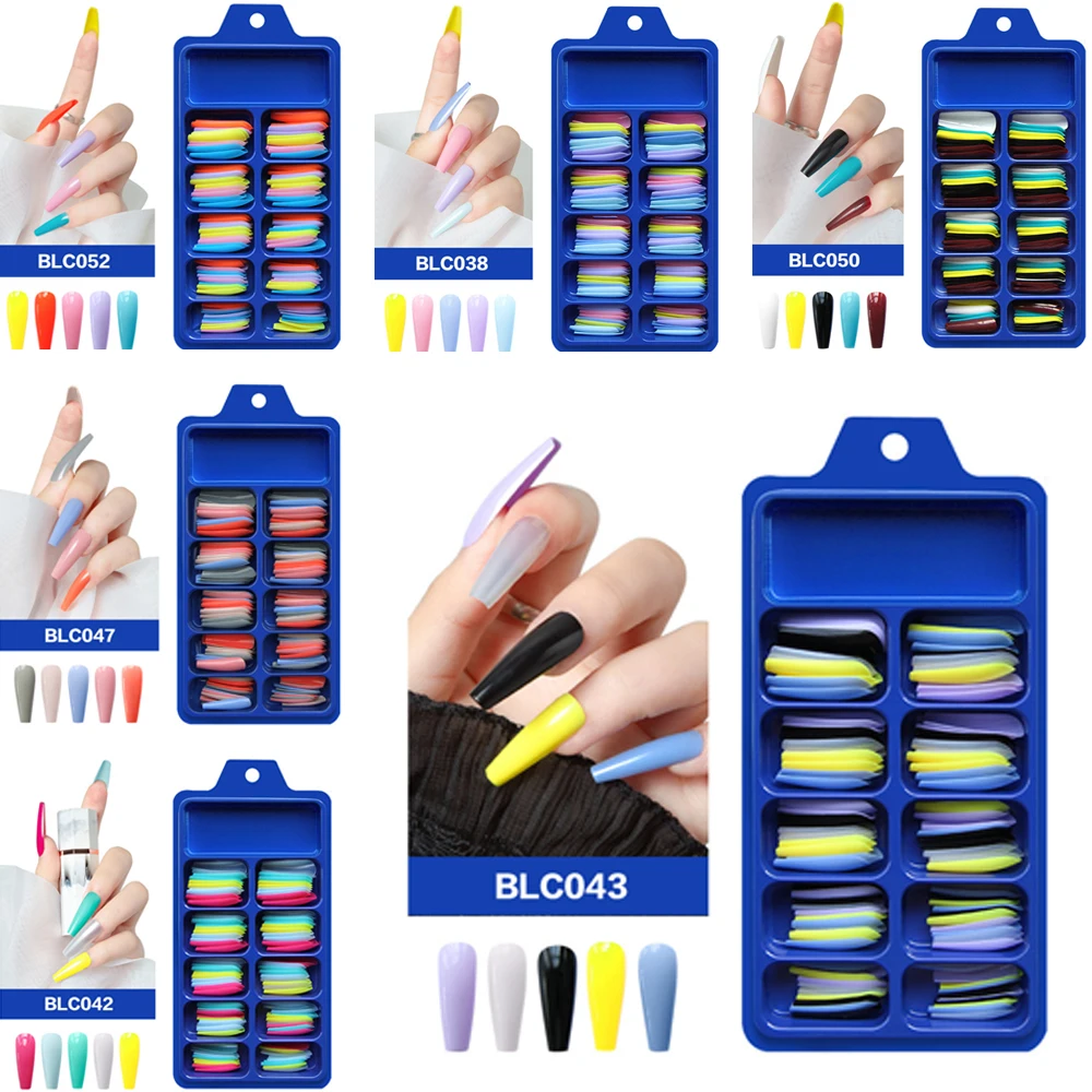 Искусственные ногти для дизайна ногтей типсы на шпильках прозрачный нажимной длинный накладной с клеем гроб палка Дисплей полное покрытие Искусственный Дизайн Матовый