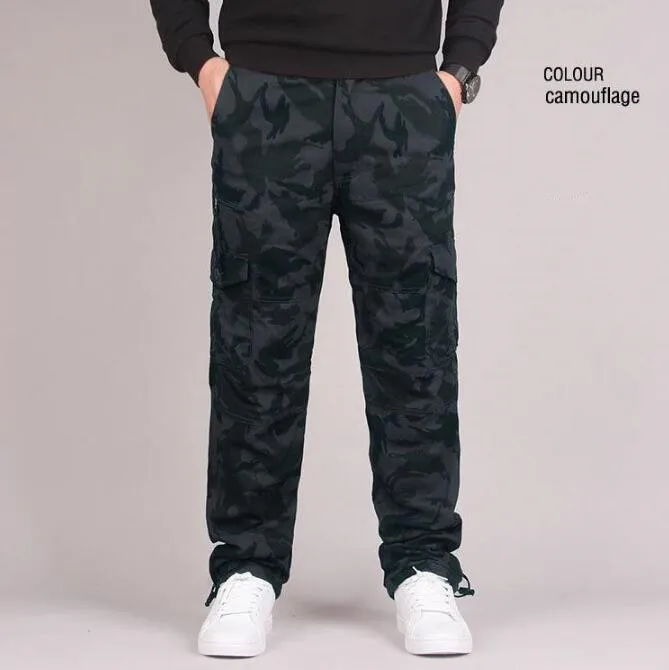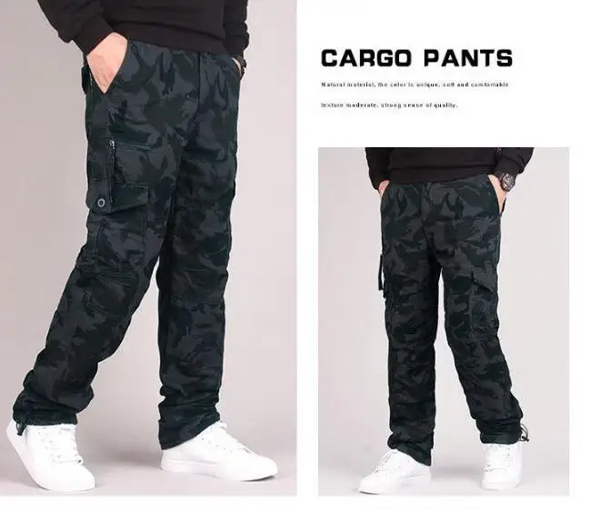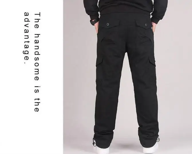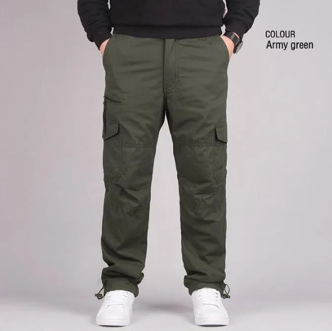 Зимние плотные флисовые повседневные брюки, мужские хлопковые военные тактические мешковатые брюки-карго, двухслойные теплые термопрямые длинные брюки