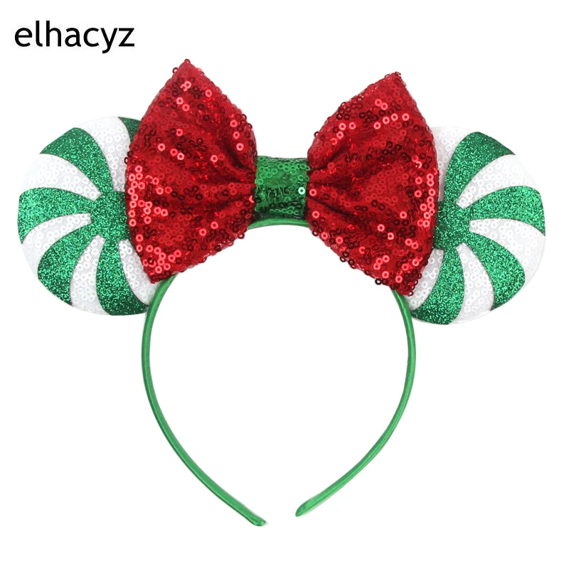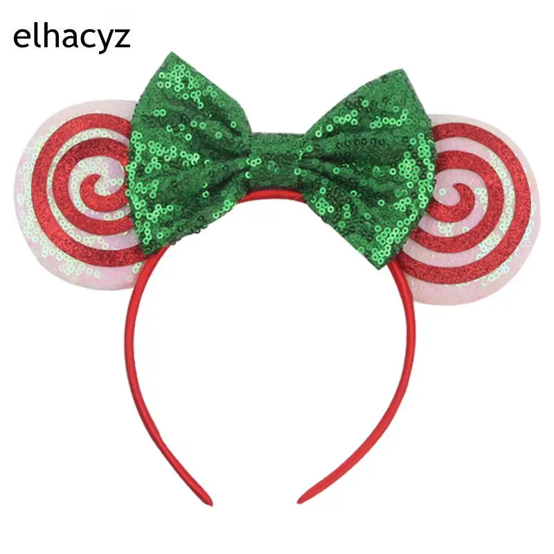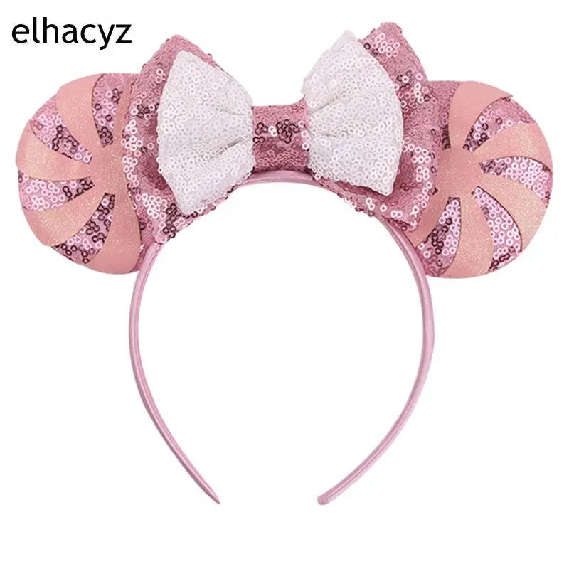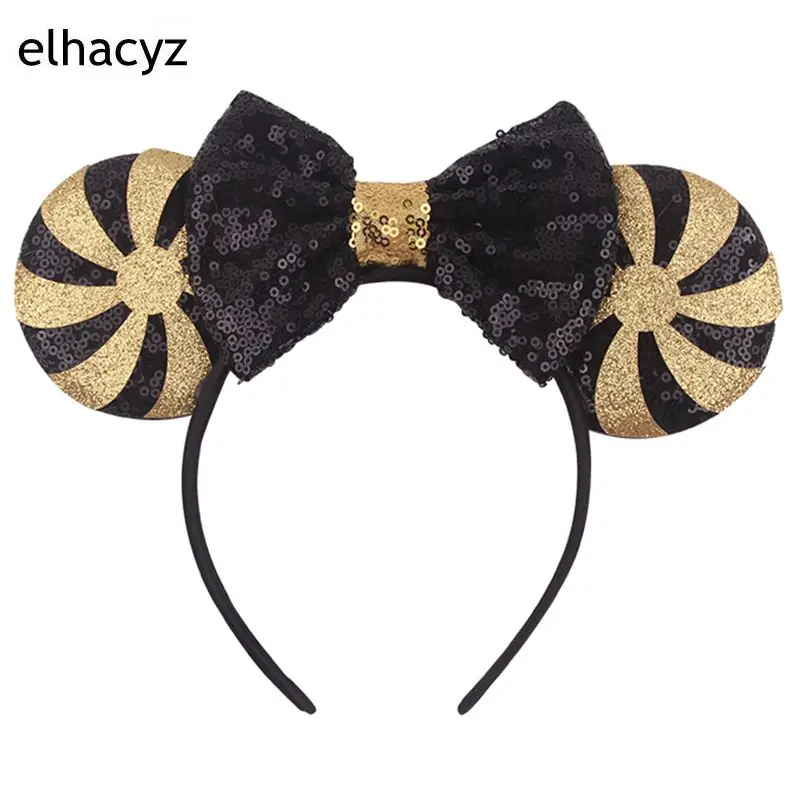Ободок для волос Женский, 3,3 дюйма, с блестками, мышиными ушками и бантом