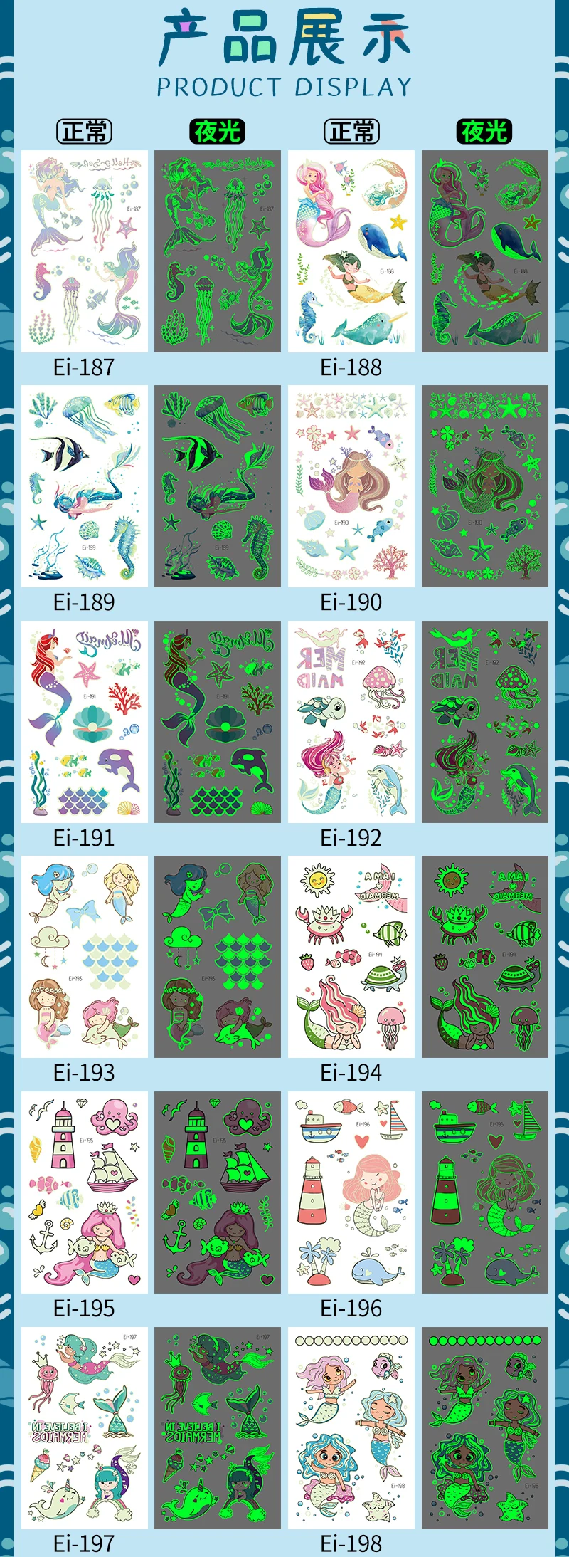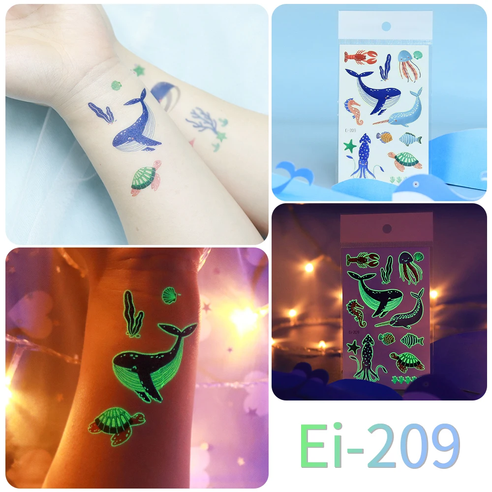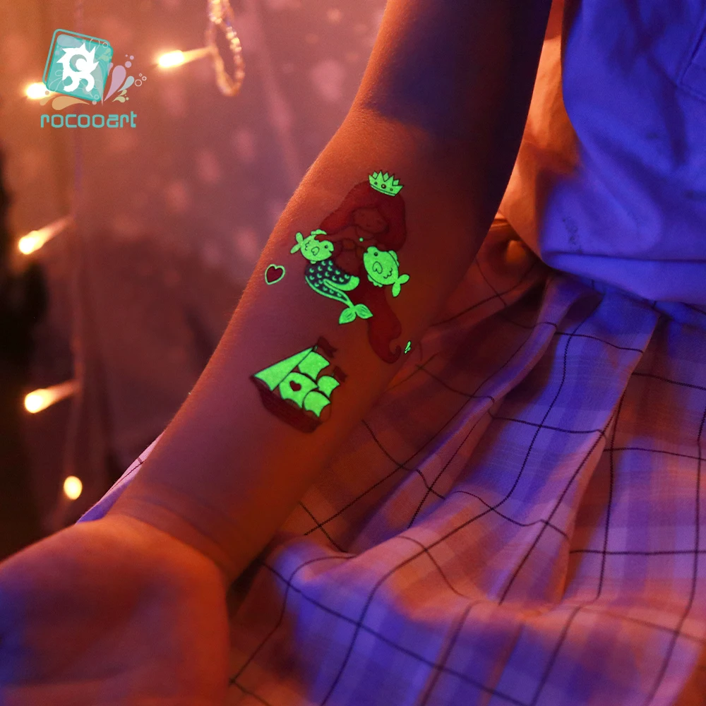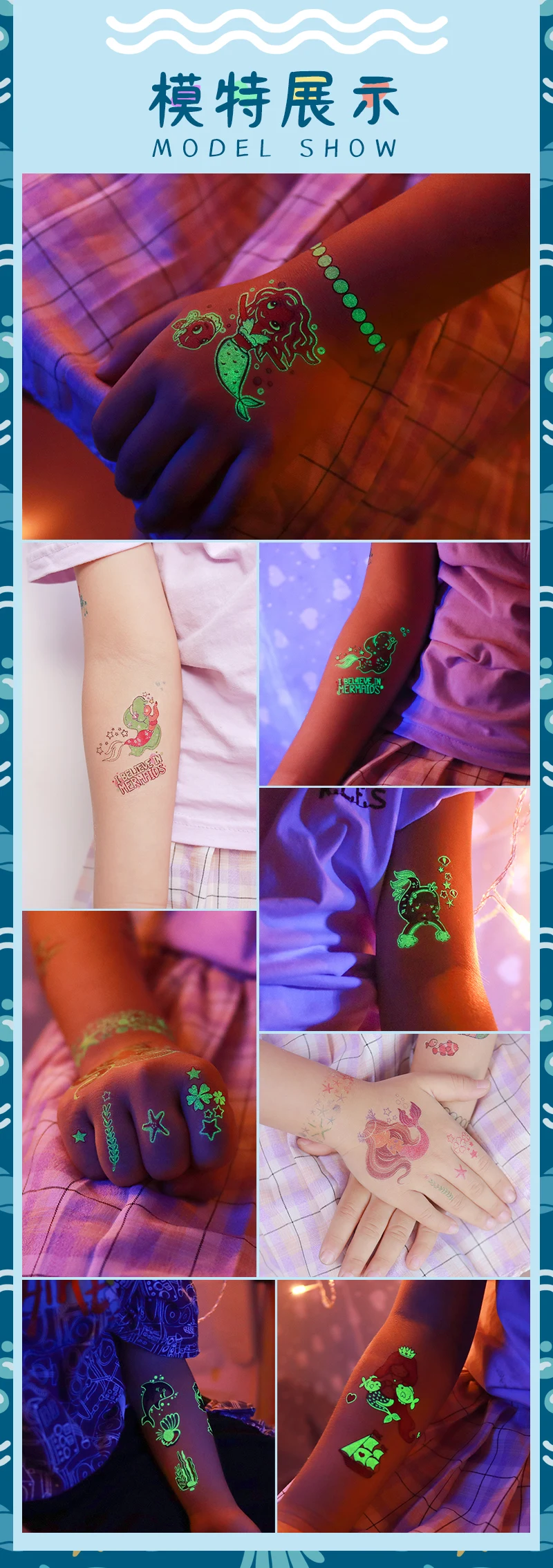 Детские водостойкие тату-наклейки для девочек, светящиеся в темноте