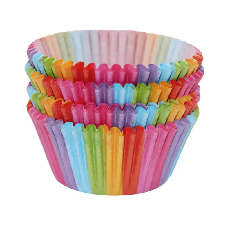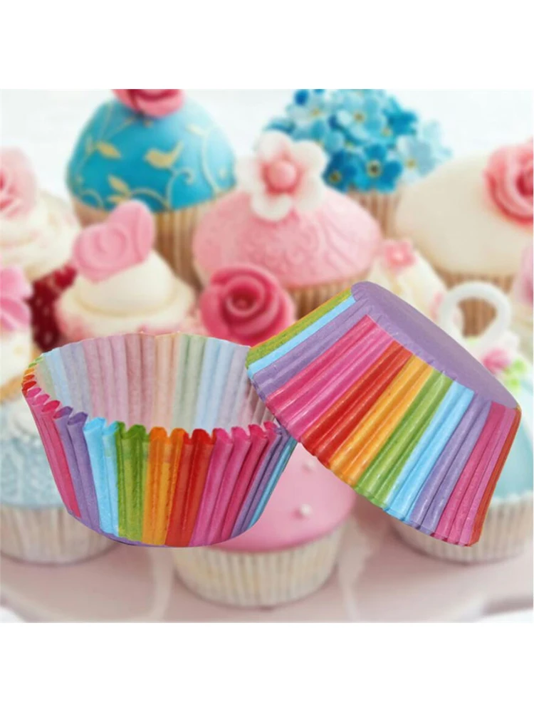 100 шт. бумажные чашки для торта, радужные формы для маффинов, форма для кексов, маслостойкая подкладка для кексов, чашка для выпечки, кухонные инструменты для украшения готовки