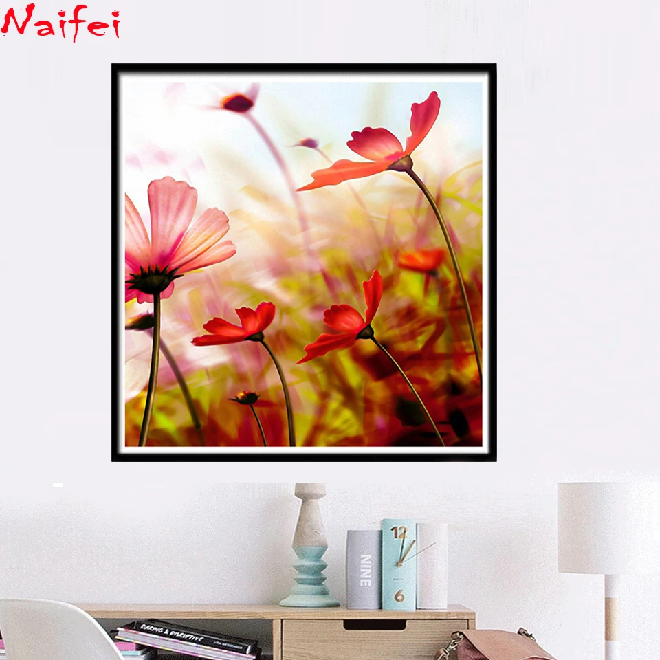 Полностью квадратная круглая дрель 5D DIY Алмазная картина розовый цветок Алмазная вышивка крестиком Набор Мозаика пейзаж домашний Docor подарок,