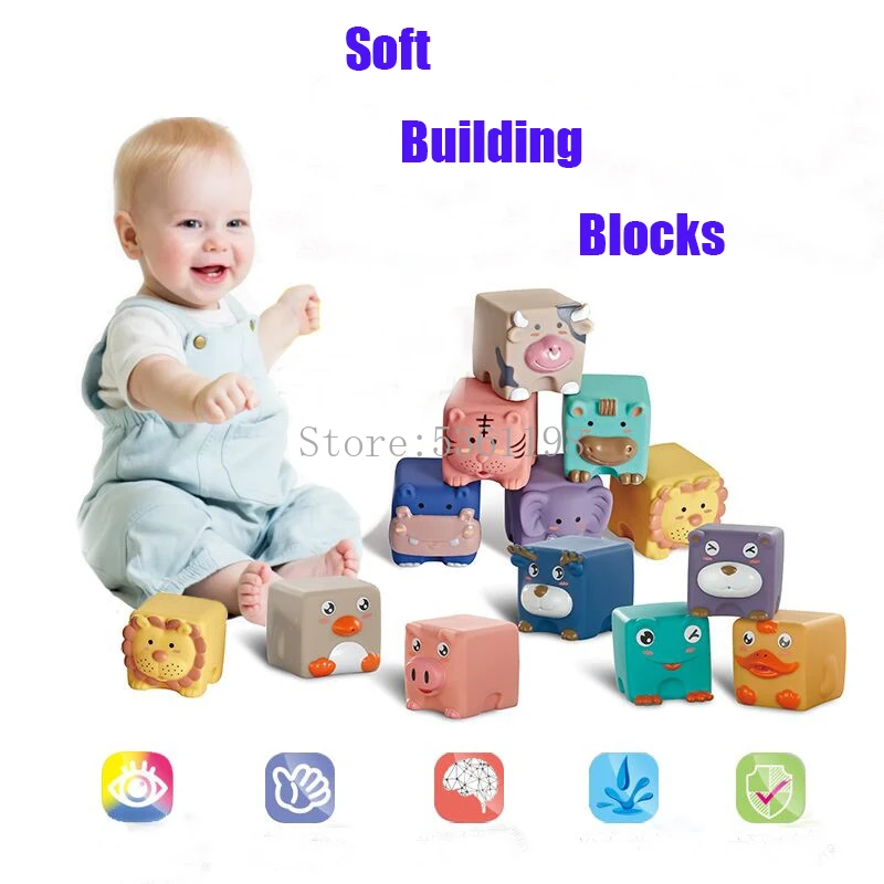 Мягкие пластиковые строительные блоки для детей, силиконовая игрушк...