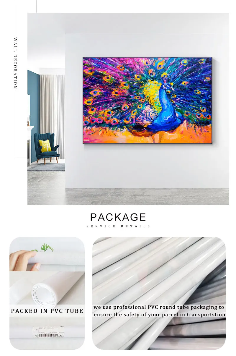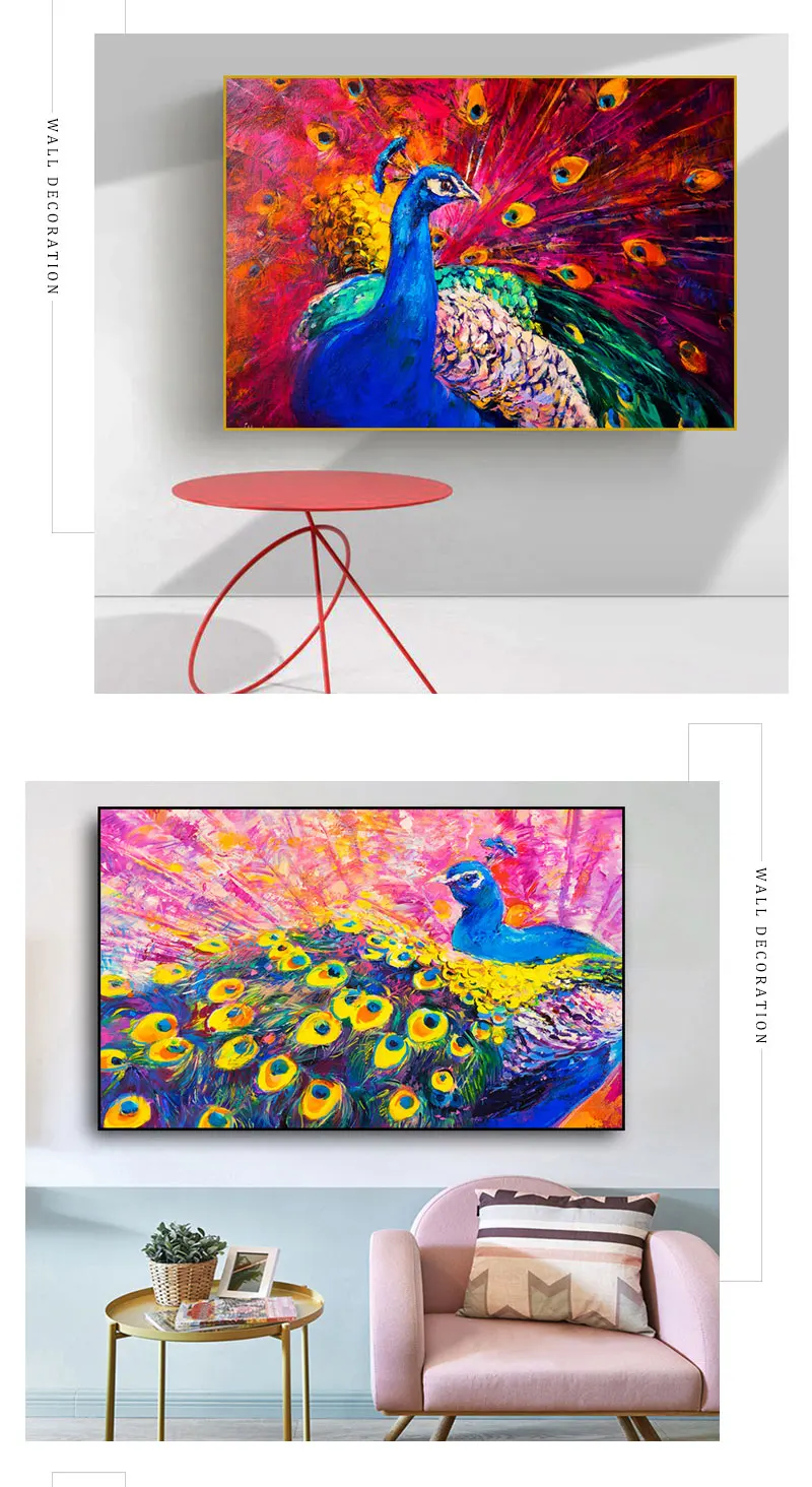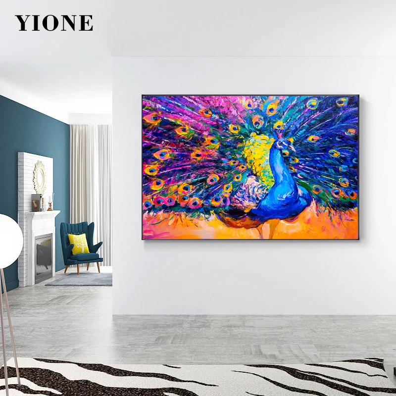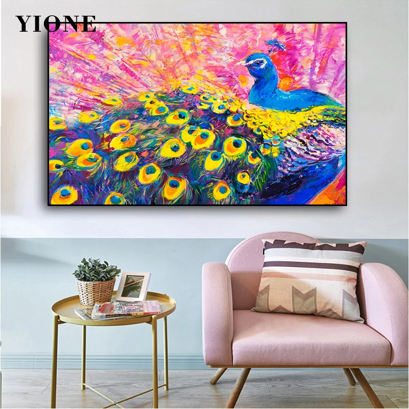 Картина на холсте с изображением павлина, абстрактная, с тропическими животными