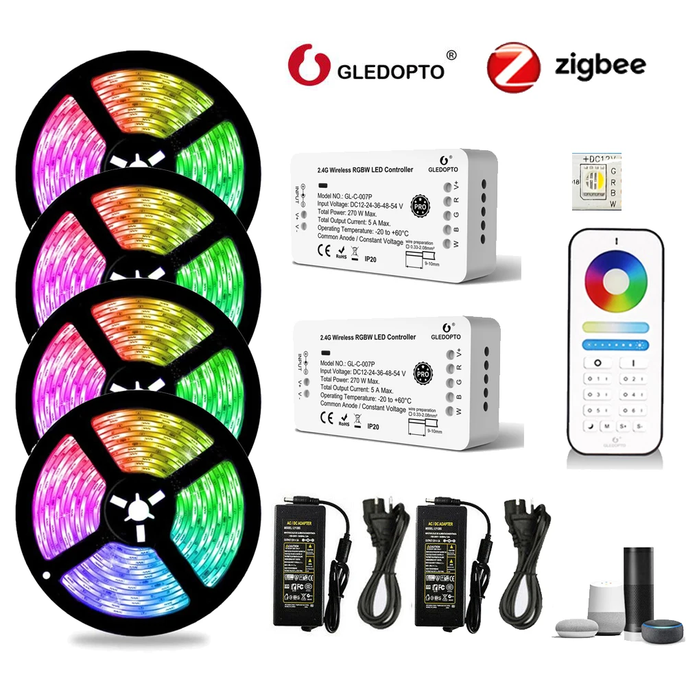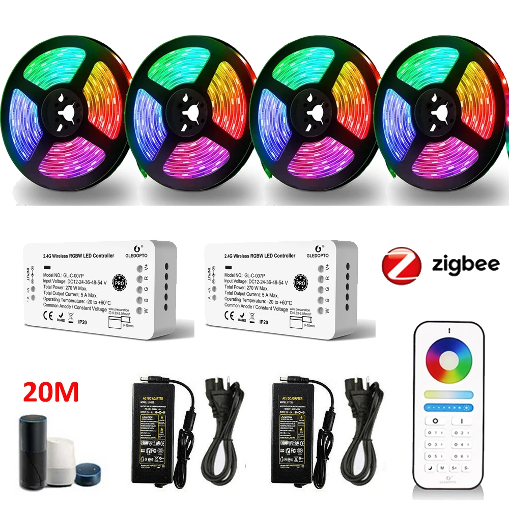 20 м Полный комплект: 4x5 м Светодиодная лента + 2xZigbee Pro управления RGBW + 6-зоны РФ Пульт дистанционного управления + 2x12V 5A Мощность питания + 2x1to2 splittle кабель