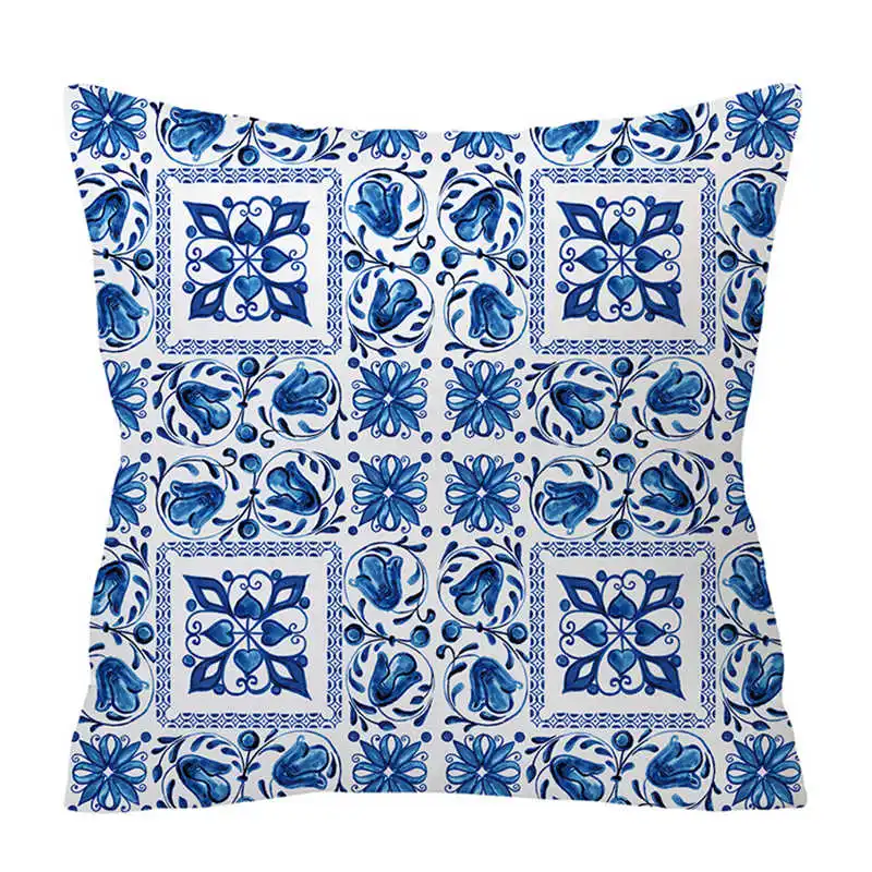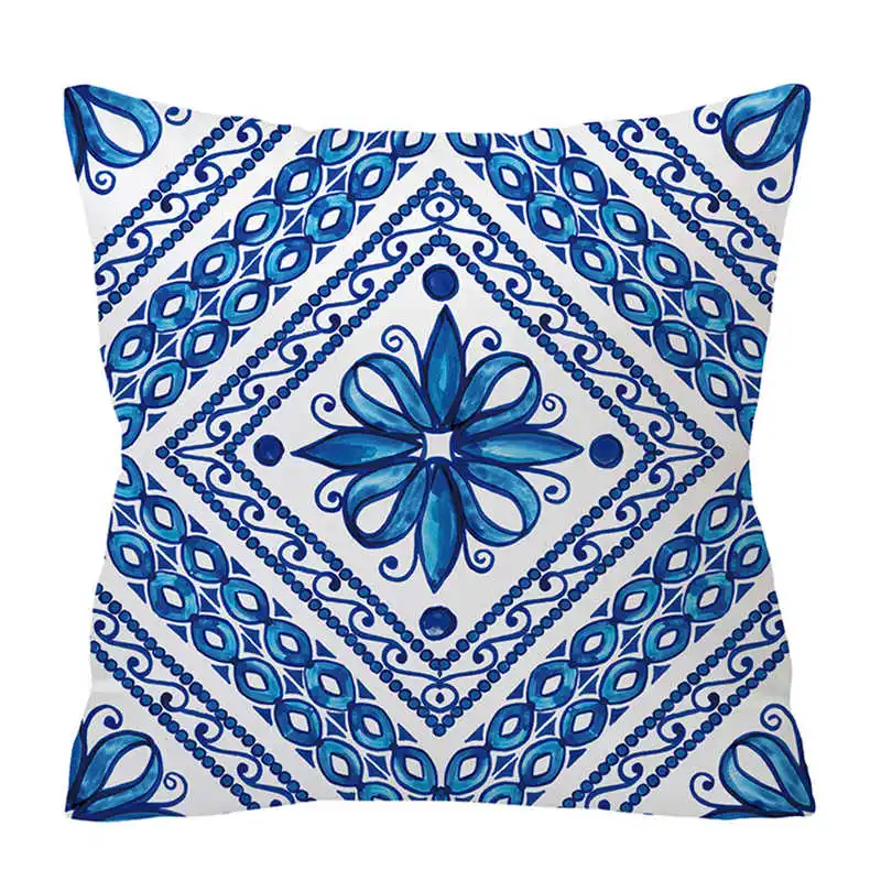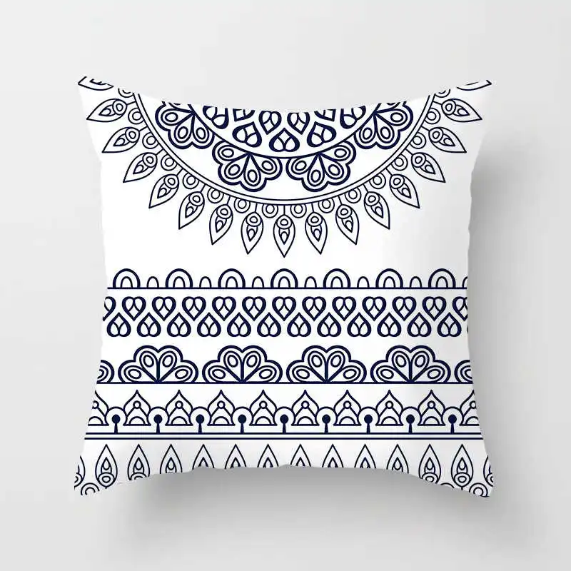 Чехол с изображением синего и белого фарфора, подушки с принтом, в богемном стиле, с изображением мандалы, подушки с геометрическим узором, для диванов, стульев, декоративных подушек