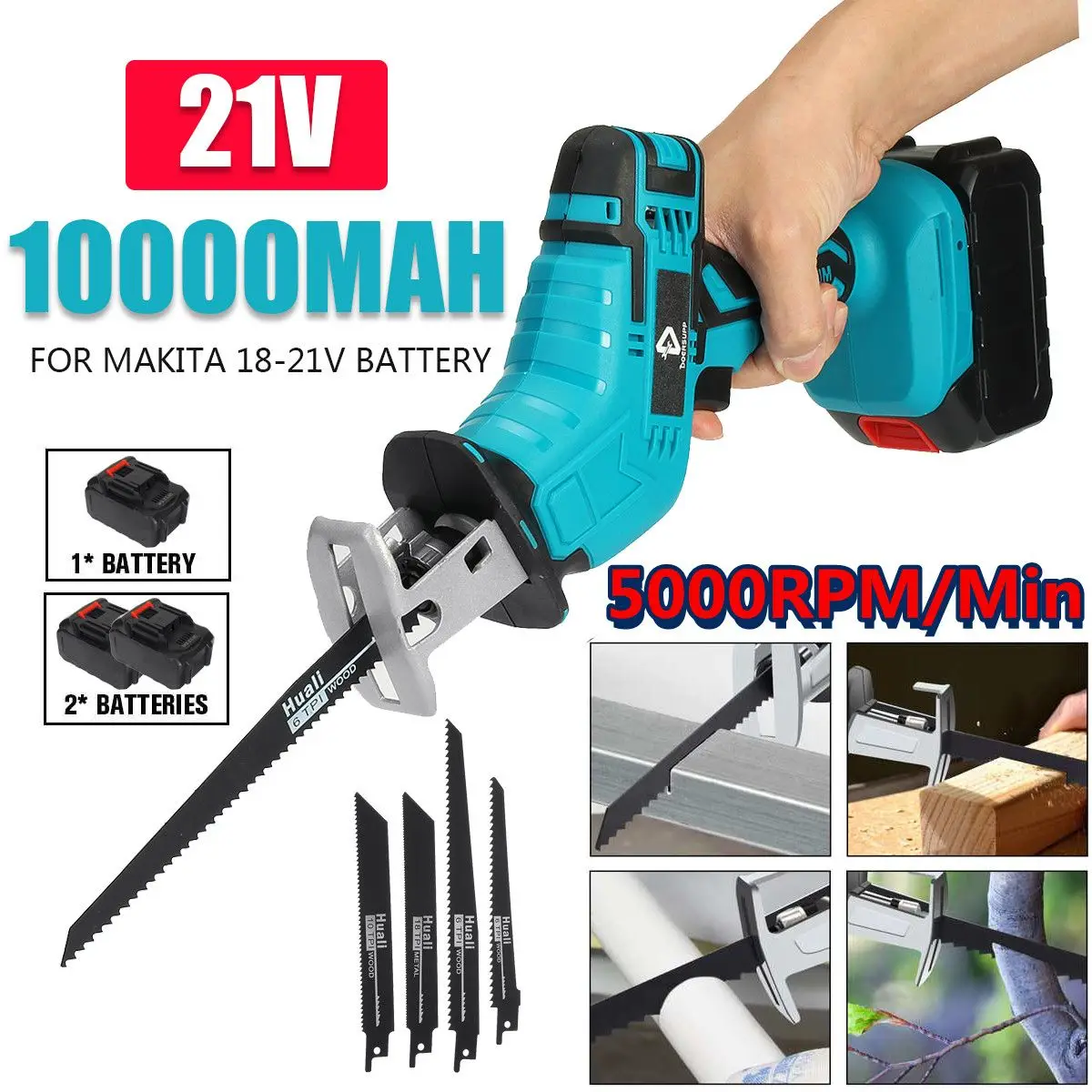 Особенности:● Высокая мощность.● Светодиодный светильник.● Переменная скорость.● Изменение лезвия без инструмента.● Беспроводная работа, более безопасная.● Эргономичная ручка.● Триггер с рычагом блокировки.● Новый Разработанный кривошипный механизм для более высокой эффективности.● Двигатель из чистой меди, сильная мощность, более стабильная работа.● Защита от перенапряжения, перегрева и перегрузки по току.● 4 вида пильных лезвий удовлетворяют потребности в резке древесины, металла, труб PCV и других предметов.Характеристики:Вилка (опция): штепсельная вилка европейского стандарта/штепсельная вилка американского стандартаСтиль (вариант): голый металл/1 аккумулятор 1 зарядное устройство/2 аккумулятора 1 зарядное устройствоЦвет: синийВход: 100-240VACНапряжение батареи: 21 вЕмкость аккумулятора: 10000 мАчБез нагрузки Скорость: 5000 об./мин.Глубина резки металла: 2 ммГлубина резки по дереву: 0-300 ммГлубина резки пластика: 100 (мм)Тип батареи: подходит для аккумулятора Makita 18-21 вРазмер продукта (Д * В): около 9 см * 30 см/3,5 "* 11,8"Размер посылка (Д * Ш * В): около 35 см * 26 см * 9 см/13,8 "* 10,2" * 3,5"Посылка включает в себя 1:1 * сабельная пила1/2 * батарея4 * лезвие пилы1 * Руководство пользователя на английском языке1 * зарядное устройство(1 * адаптер штепсельной вилки, согласно вашей стране доставки)Посылка включает в себя 2:1 * сабельная пила4 * лезвие пилы1 * Руководство пользователя на английском языкеПримечание:-Если у вас есть какие-либо проблемы или проблемы, пожалуйста, свяжитесь с нами, мы всегда там-Возможны отклонения в 2-5 см вследствие измерений вручную. Спасибо за понимание-Мониторы не калибруются так же, цвет продукта, отображаемый на фотографиях, может немного отличаться от реального объекта. Пожалуйста, выберите реальный стандарт