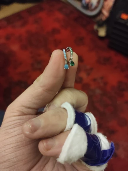 Серьги оказались совсем крошечными. Я сомневалась даже, что они в ухо не вденутся, однако все же удалось надеть. В ухе чувствуются удобно. Не знаю насчёт серебра, но проба на них стоит. Смотрятся изумительно, вот если б побольше были бы ещё. Но для ребенка подойдут отлично. Сфоткала их на ладошке для понимания размера.