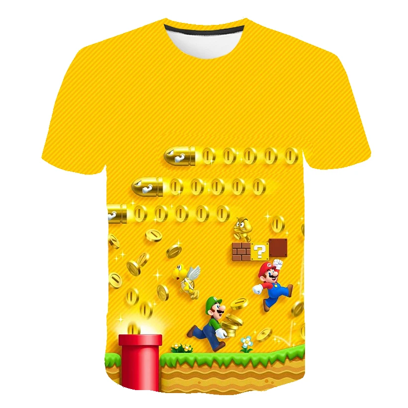Модная классическая мультяшная Спортивная 3D футболка из полиэстера, новинка, в стиле Harajuku, игры в Марио, детская одежда для мальчиков, топы с коротким рукавом