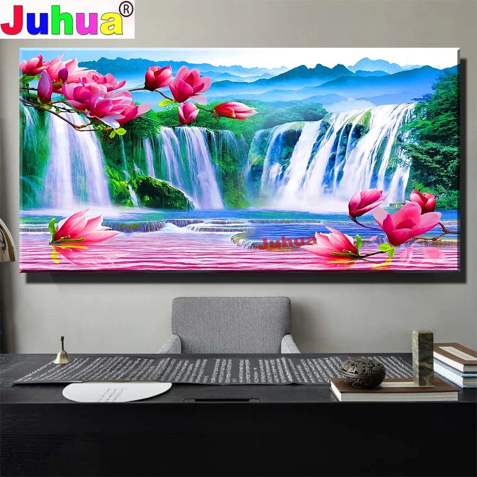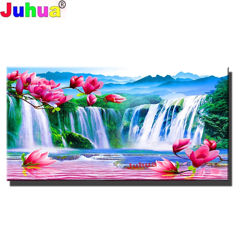 5D алмазная живопись сделай сам, "Пейзаж магнолии, водопад", полная выкладка, мозаика, искусственная вышивка, ручная работа, подарок