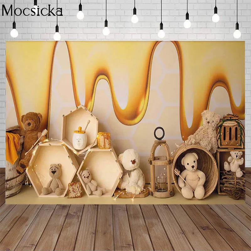 Милая медовая фотография Фон Медведь Новорожденный ребенок торт разбивать портрет день рождения ребенка душ фон фото студия фотосессия