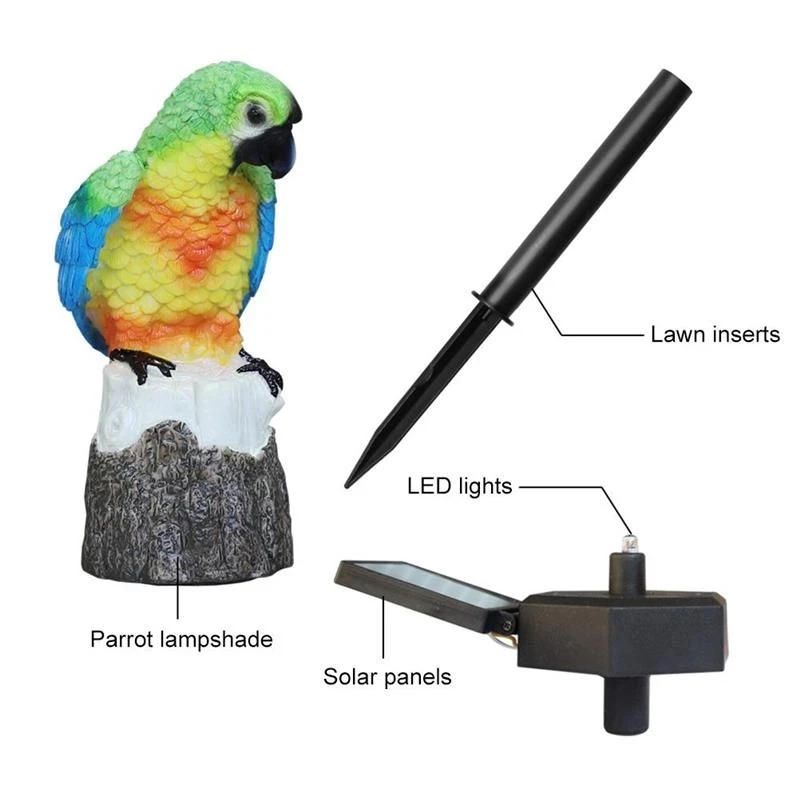 Светодиодный уличный светильник на солнечной батарее, водонепроницаемый ночсветильник в виде попугая, лампа на колышке для газона, Рождественское украшение для дома