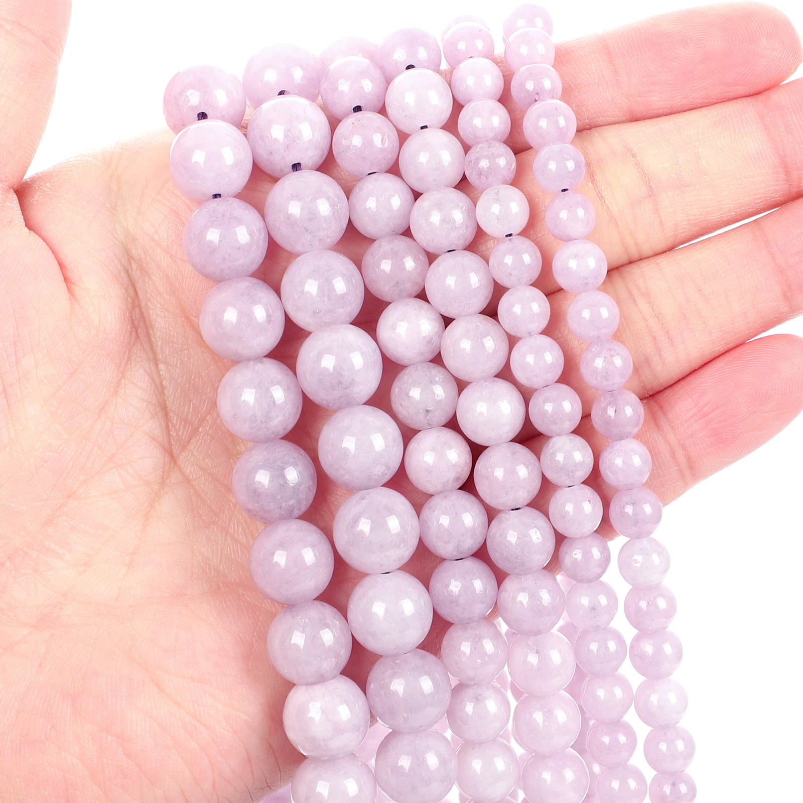 Гладкие бусины из натурального лавандового камня, круглые бусины-ра...