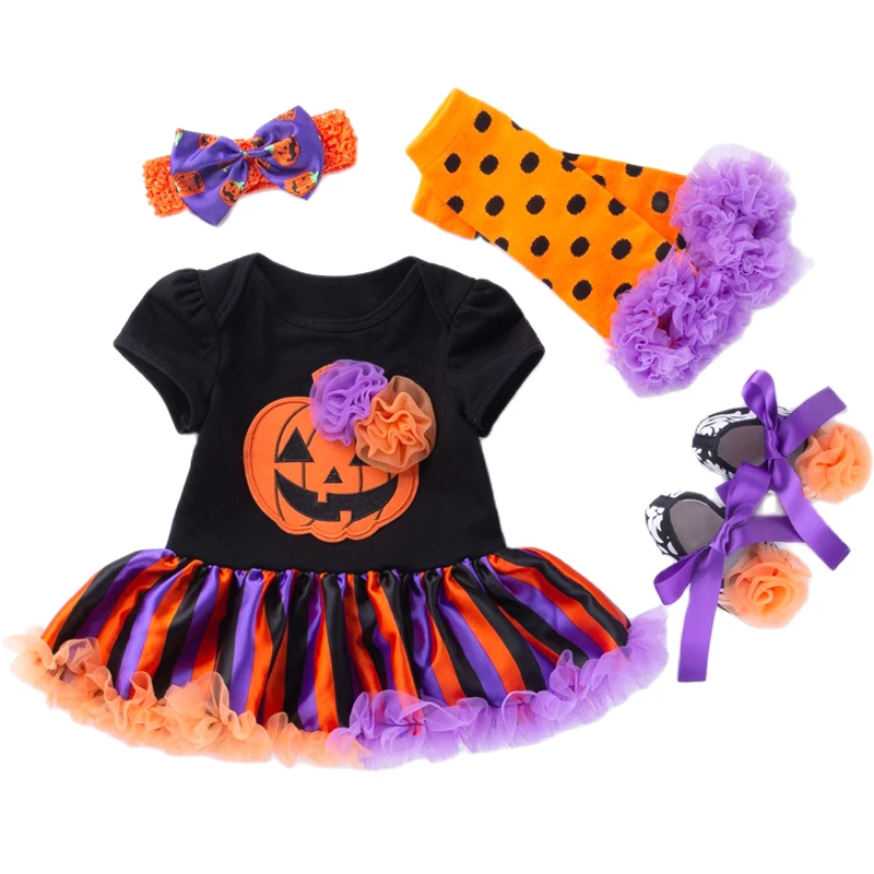 Милые костюмы на Хэллоуин для маленьких девочек; Костюмы на Хэллоуин; Комплекты одежды для малышей; Летняя одежда в полоску с изображением тыквы для детей 3, 6, 9, 12, 24 месяцев