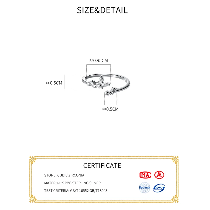 Регулируемое кольцо INZATT из настоящего серебра 925 пробы с циркон...