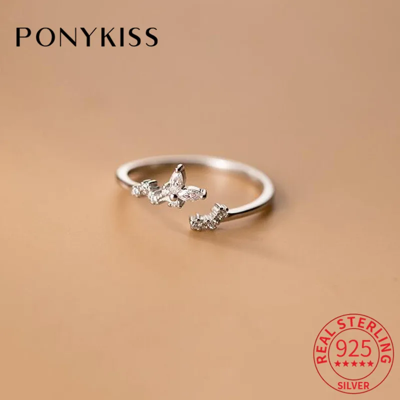 Стильные Регулируемые кольца PONYKISS из стерлингового серебра 925 пробы с цветком из циркония для вечерние