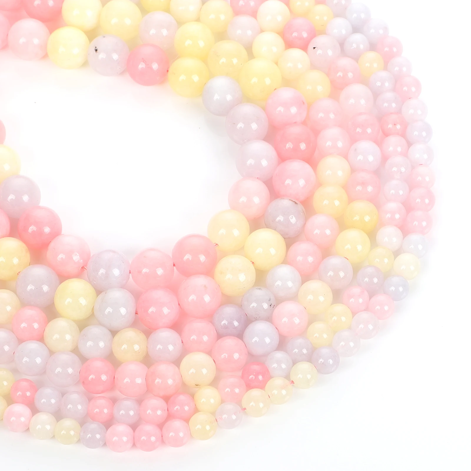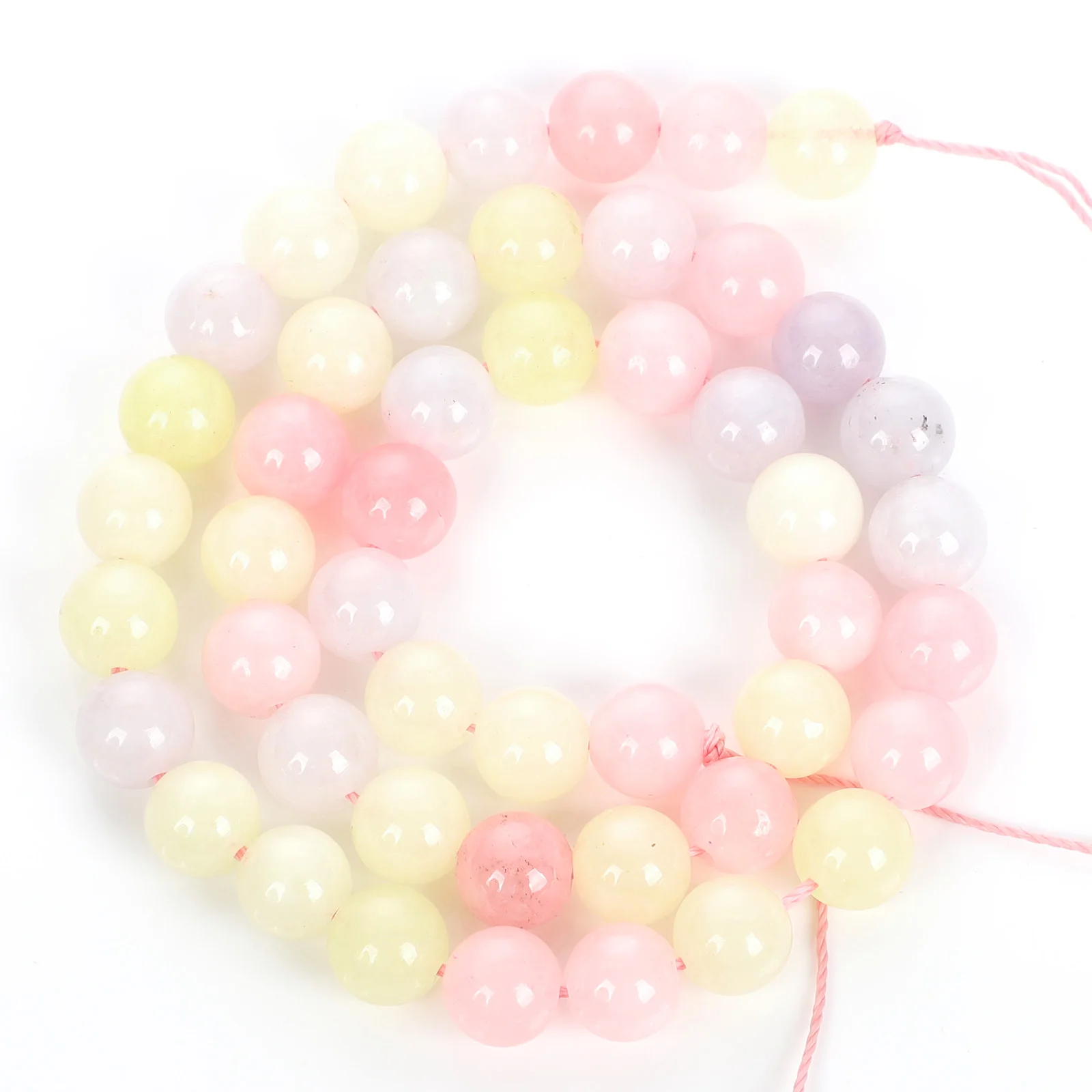 Оптовая продажа, бусины из натурального камня Моргана, желтые, розовые гладкие круглые бусины-разделители для изготовления ювелирных изделий, браслетов, шармов, аксессуары 6810 мм