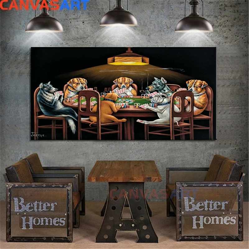 Картина на холсте с изображением собак, игральных карт, покера, картина маслом, плакат и принты, настенное искусство для гостиной, домашний декор (без рамки)