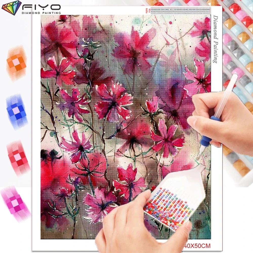 FIYO камни в форме ромбакруглый дрель 5D DIY алмазная живопись "Цве...
