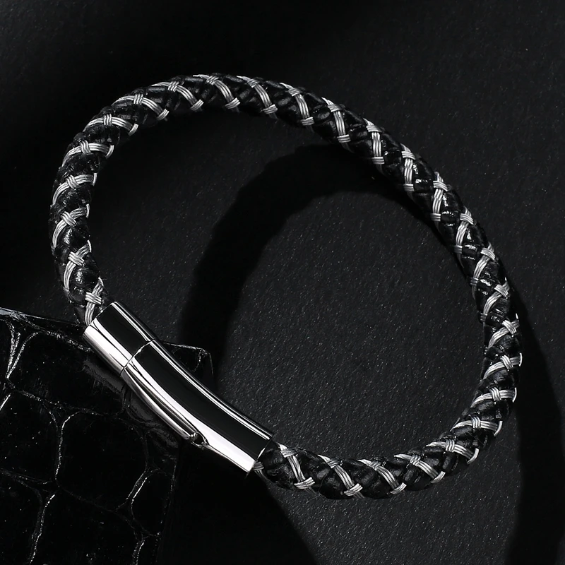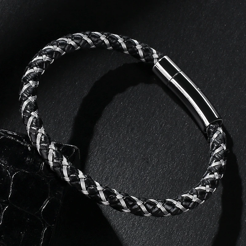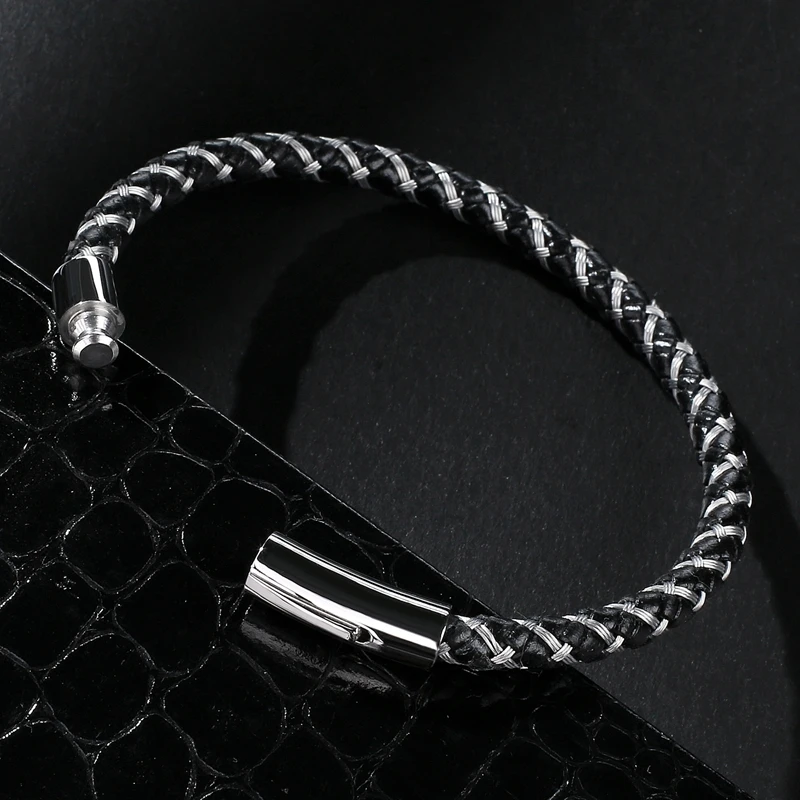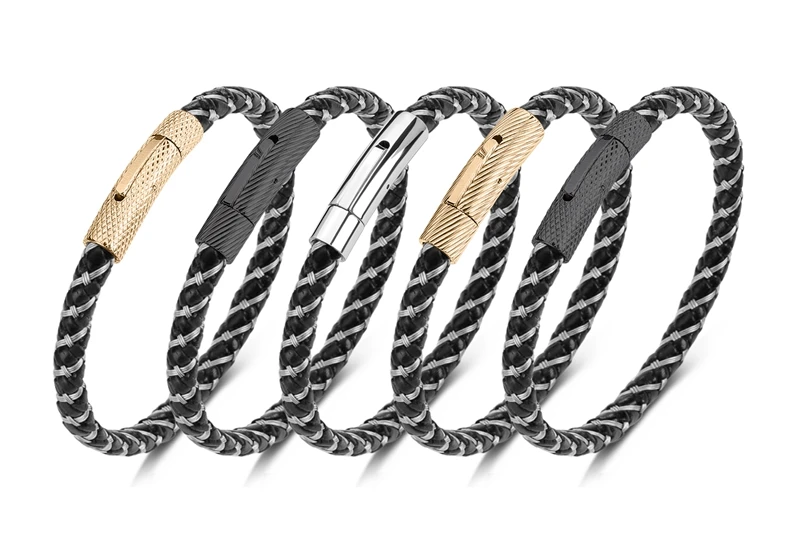 Плетеный браслет из Проволочной веревки и кожи для мужчин и женщин, повседневные ювелирные изделия, плетеные браслеты из нержавеющей стали, модный браслет, подарок P608