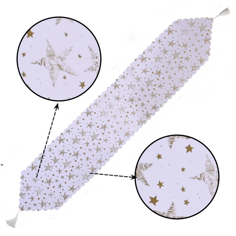 Рождественская штамповка Золотая белая настольная дорожка Рождестве...
