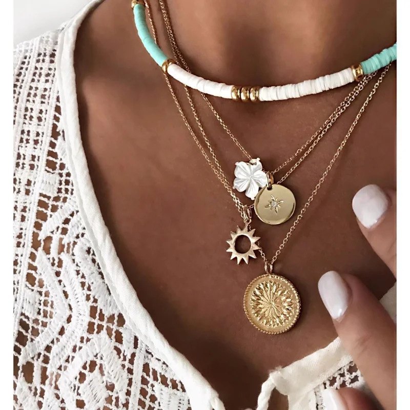 В богемном стиле многослойного цветы колье для женщин Мода Золотое ...